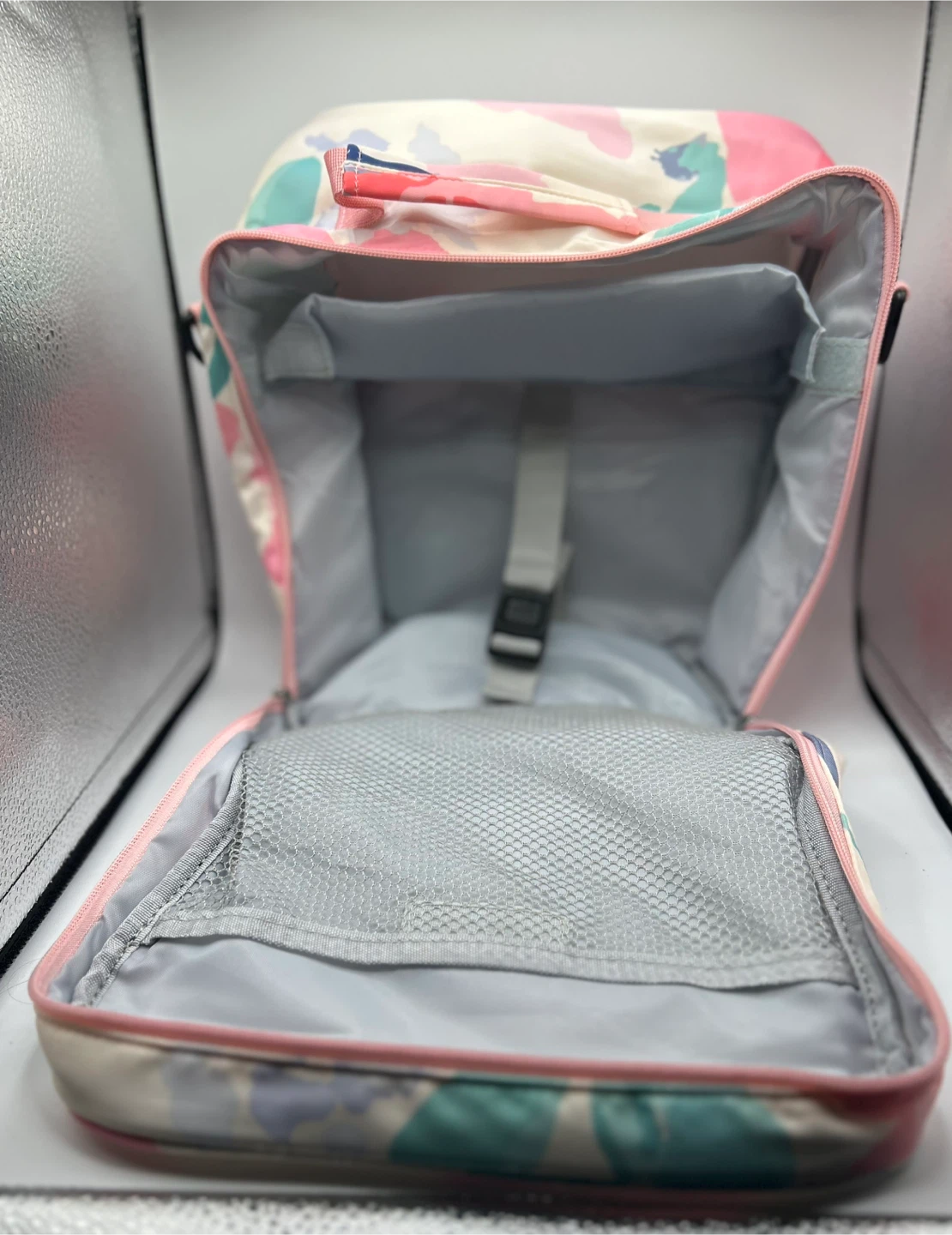 Description: Brighten up your lunch routine with this beautiful, multi-colored floral insulated lunch bag! Perfect for work, school, picnics, or travel. The eye-catching watercolor-style floral print features lovely shades of pink, teal, and navy blue.