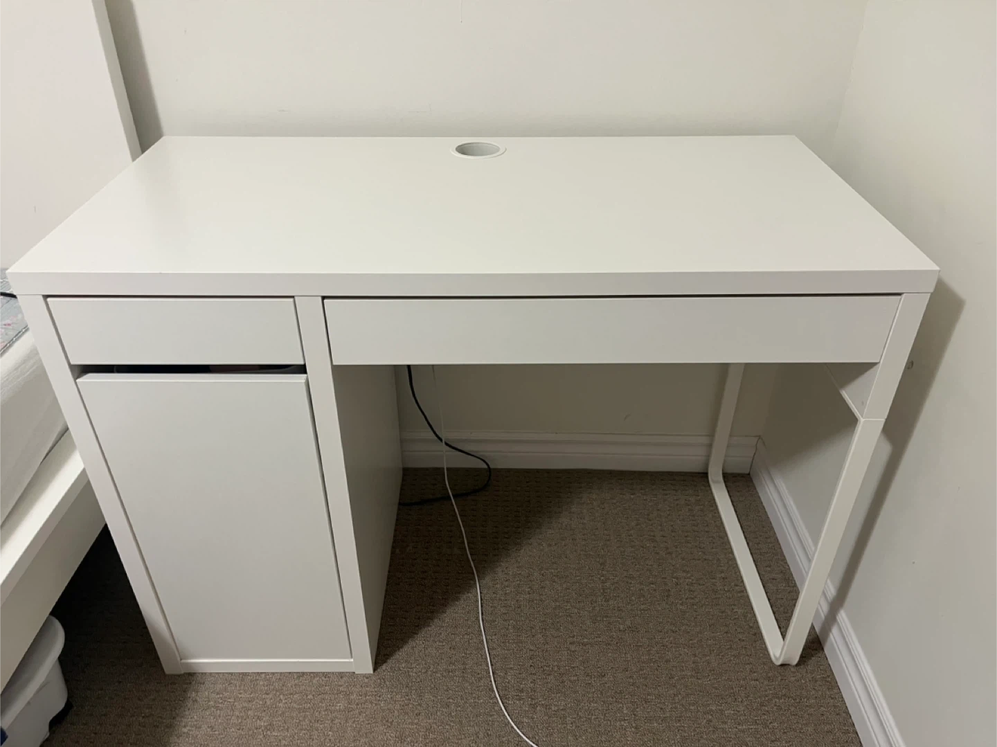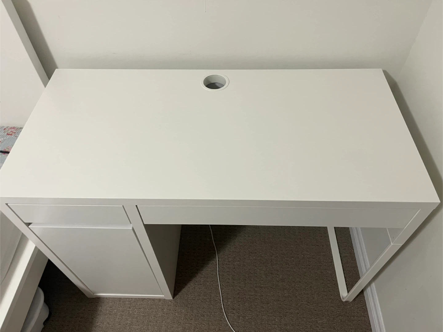 Selling a white IKEA desk in great condition! It's perfect for a home office or study space. It has a clean and simple design that will fit into any room. It's sturdy and has plenty of space for your computer and other supplies