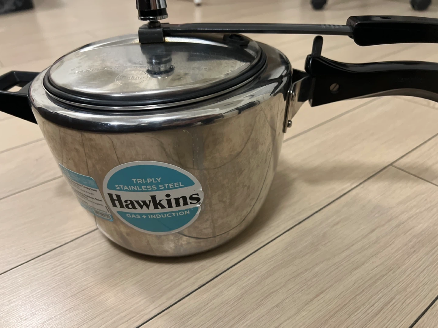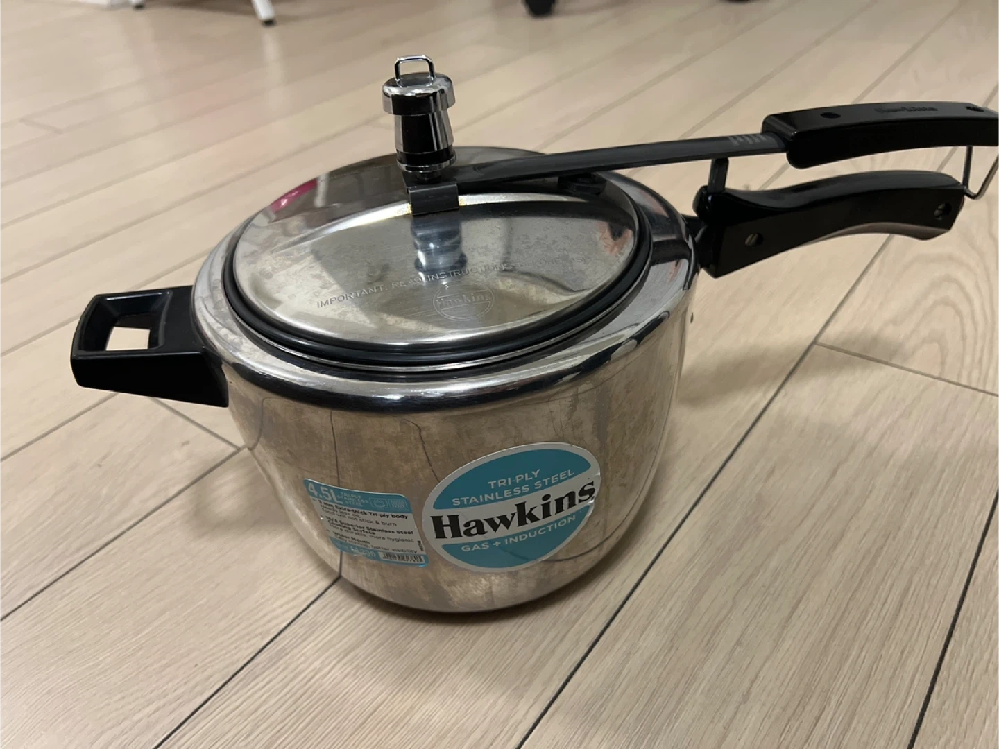 Selling a Hawkins 4.5L pressure cooker! It's a tri-ply stainless steel model, suitable for both gas and induction stoves. It's in great shape and ready for a new kitchen!