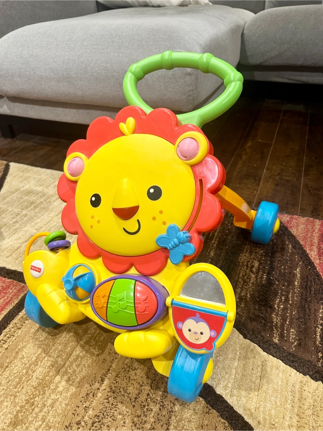 Fisher-Price musical lion walker, an older version of this: https://www.walmart.ca/en/ip/Fisher-Price-Musical-Lion-Walker/10220442