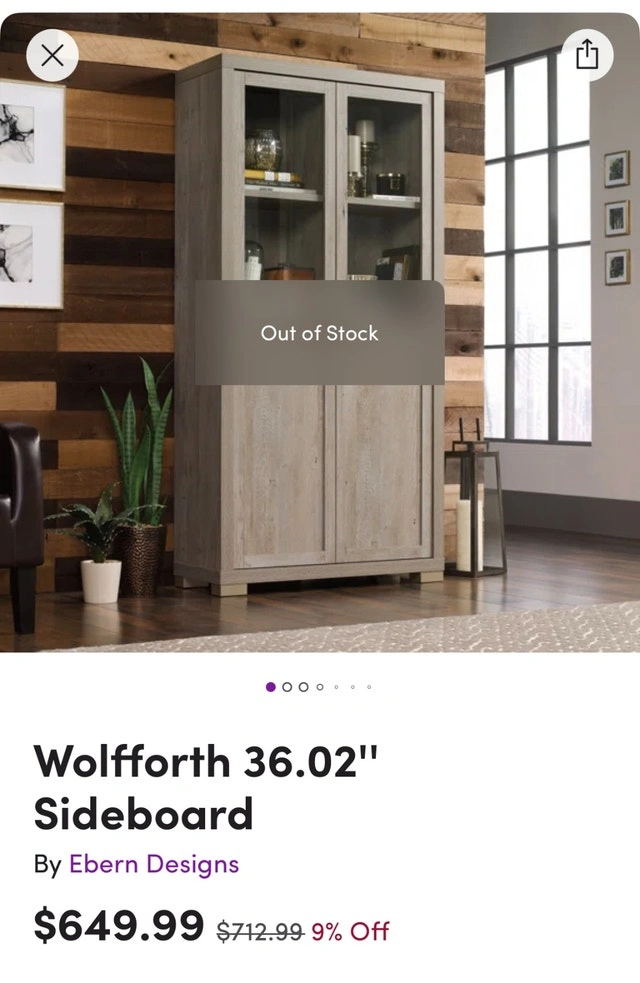 Originally purchased from Wayfair in 2021 for over $800. Color: Gray. Overall dimensions: 72.04” H x 36.02” W x 14.45” D. Overall weight: 150lbs. Material: Manufactured Wood (particle board / chipboard). Weight capacity: 200lbs. Shelf weight capacity: 25lbs. Product care: Wipe clean with a dry cloth. Two large doors include safety-tempered glass inserts. Six spacious shelves inside, four of which are adjustable. No damage or scratches. Ideal for storing books, dinnerware and home décor. You'll need to bring your own muscle to move it. Pick-up is in SW side of town. CASH only. Text if interested – 403.993.7784.