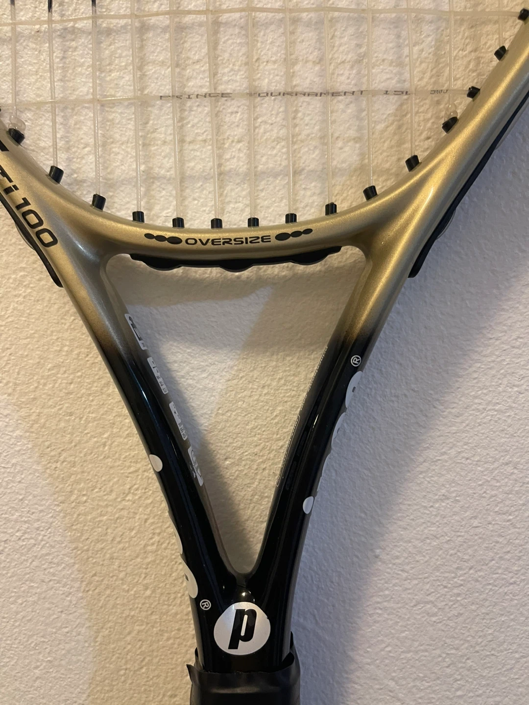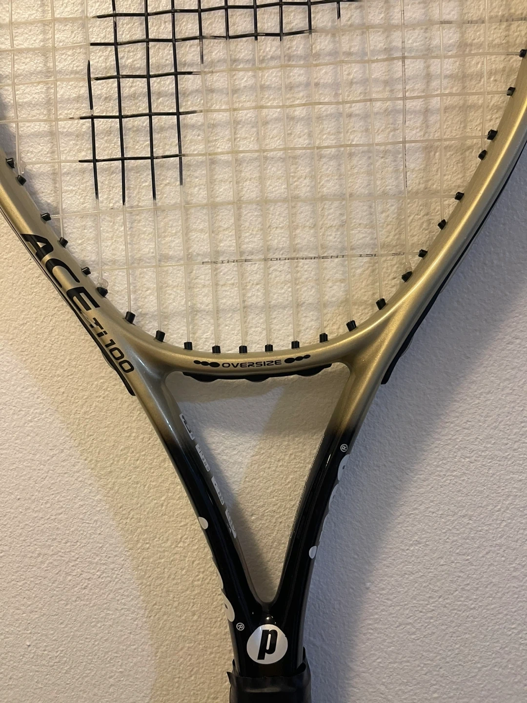 Selling a Prince Ace Ti 100 tennis racquet. It's an oversize racquet in good condition. The grip shows some wear, but the frame is in great shape. It also features Triple Force Optimum Stability.