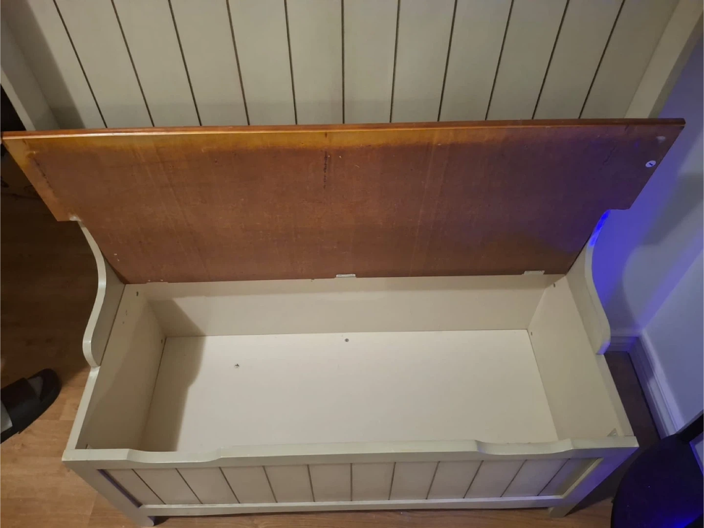 Hall tree with a built-in storage bench! It's a great piece to keep your entryway organized. The bench provides a spot to sit while putting on shoes, and the hall tree has hooks for hanging coats and hats. The storage bench is approximately 40 inches long and 17 inches wide, offering ample space for storing items like shoes and bags