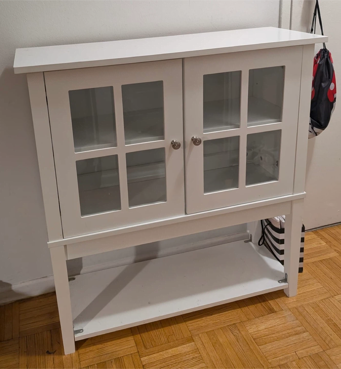 Selling a lovely white display cabinet! It features glass doors and shelving, perfect for showcasing your favourite items. It's in great condition and would look wonderful in any room of the house