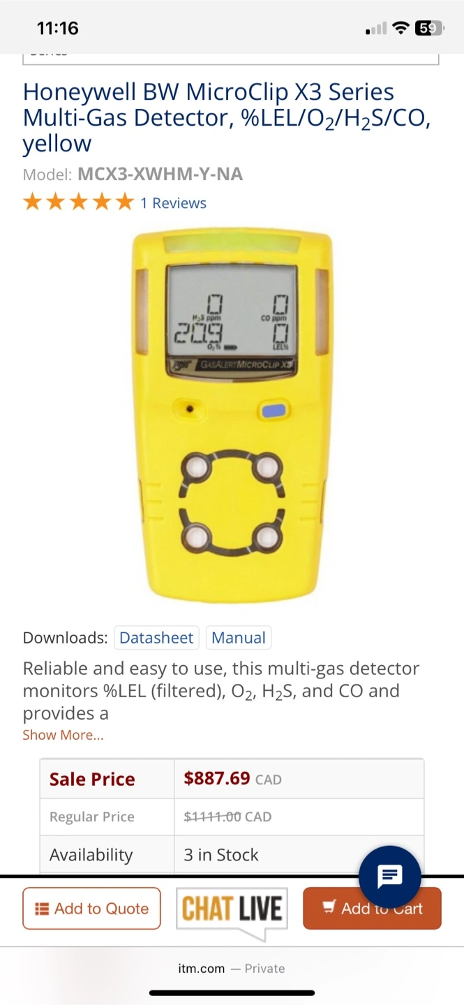 Selling a Honeywell BW MicroClip X3 Series Multi-Gas Detector in yellow. It monitors %LEL (filtered), O2, H2S, and CO. Includes the box and accessories!