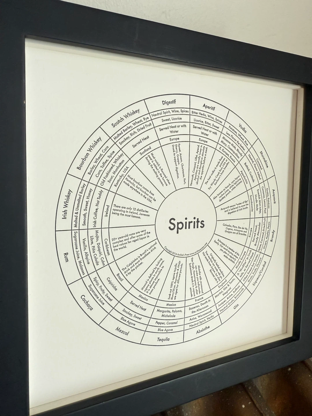 Spirits wheel in square letterpress print from Canadian printmaker, in square Pottery Barn black frame 🥃