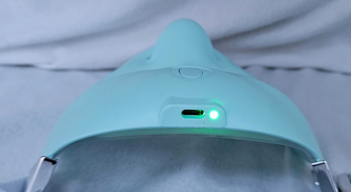 This Qure Red Light Therapy for Face LED Mask charges with an internal battery with a USB cable, which is also included.