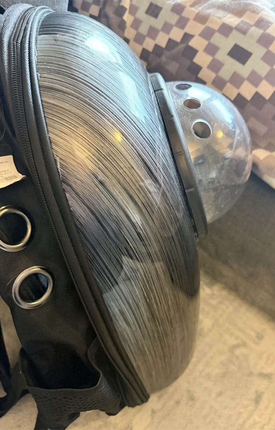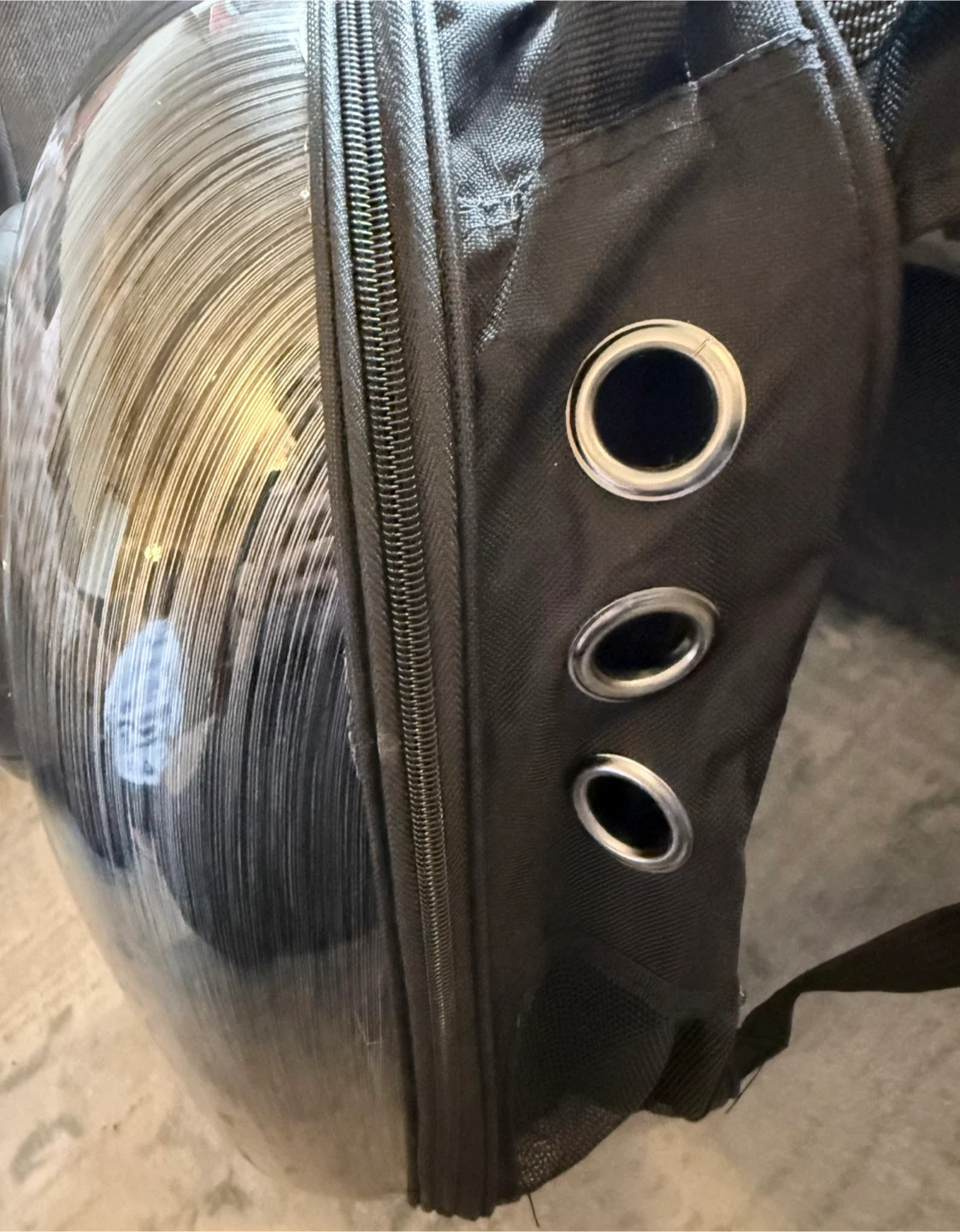 Selling a hard-sided pet carrier backpack! It's black with a clear bubble window so your furry friend can enjoy the view. The tag says it's one size and the original price was $89.99