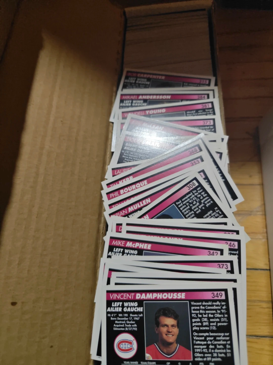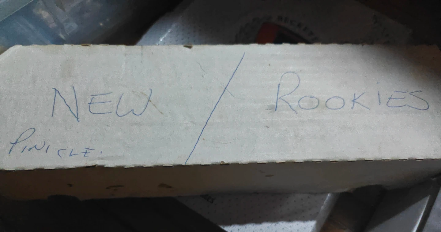 Selling a collection of Pinnacle 1992 hockey cards, including new rookies roughly 750 cards. The cards are in a box labelled 'New/Rookies'.