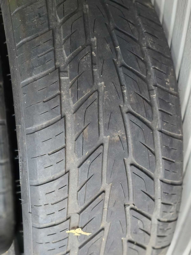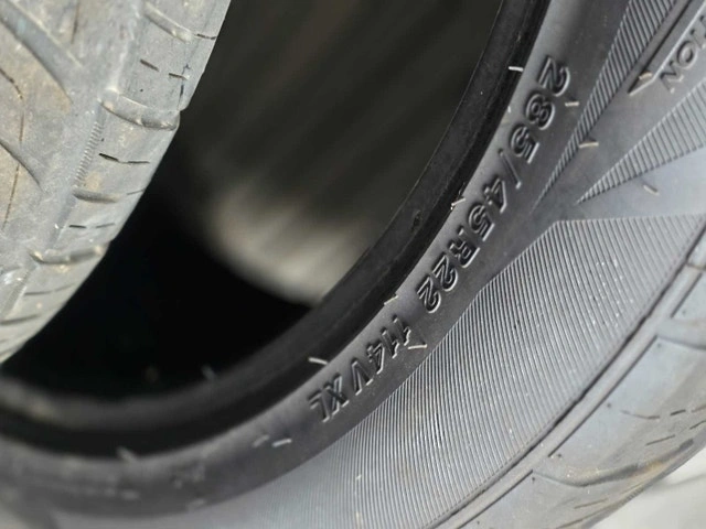 These are two low profile truck tires, sized at 285/45R22 114V XL, perfect for enhancing your truck's performance and look. These tires are in used condition, as seen in the images. They have some wear but still offer plenty of life for the road ahead.