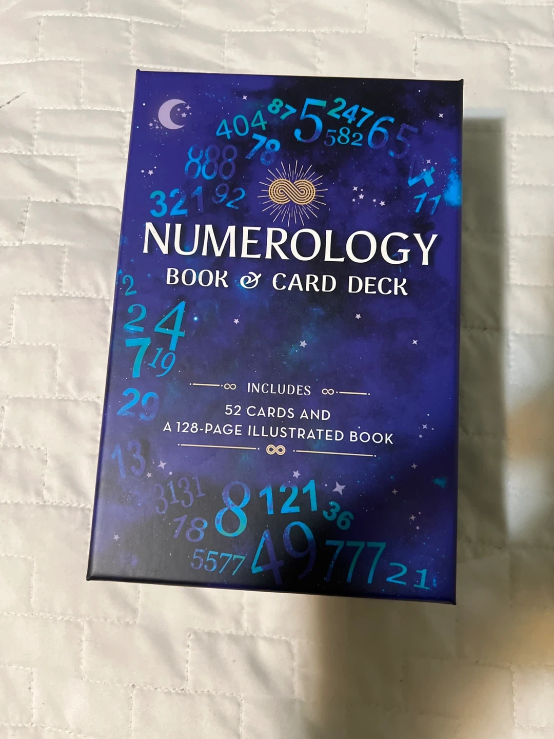 Selling a Numerology Book & Card Deck that includes 52 cards and a 128-page illustrated book! It's a guide to using your deck, written by Sahar Huneidi Palmer. Perfect for exploring the mystical significance of numbers!