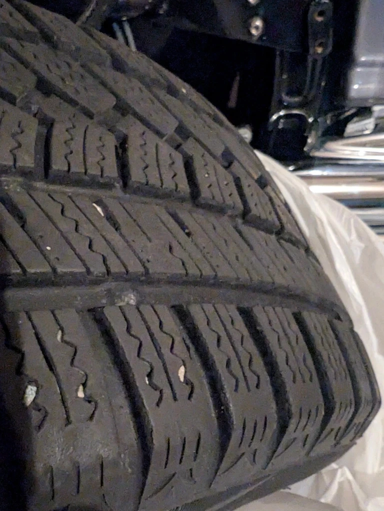 A set of 4 winter tires used for two winters before vehicle was sold and now no need for tire set. The tires have at least 60% left, the rims are in good condition, with a bolt pattern of 5*100.