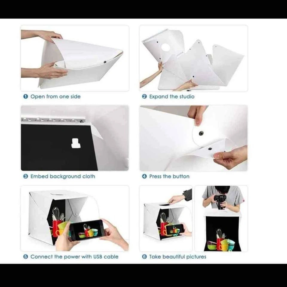 With this 16"*16"*16" large box, you can make perfect product photos in a daylight-like environment. Comes with colorful backdrops. Location: Dundas St Downtown Toronto