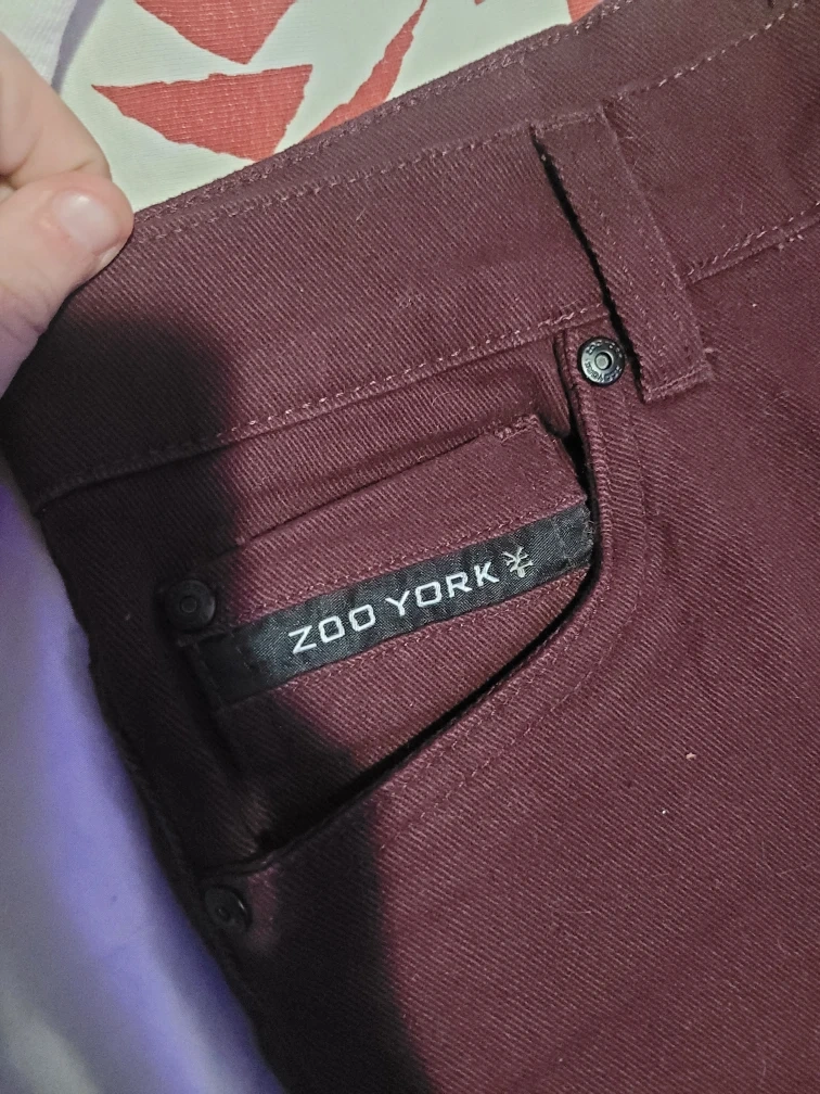 Zoo York jeans in size 13/14. Established 1993 in New York City. These jeans are a stylish and comfortable addition to any wardrobe. The colour is a deep burgundy.