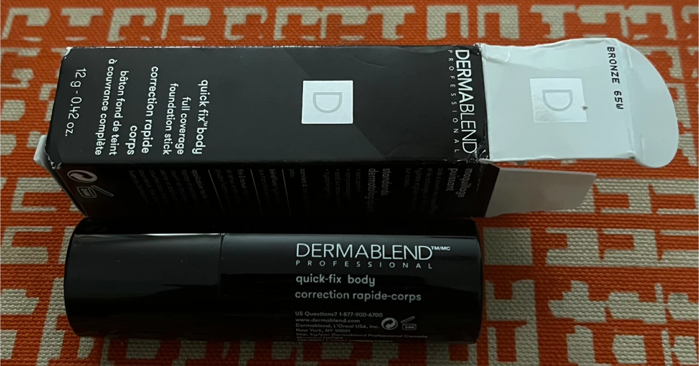 Selling a Dermablend Quick-Fix Body full coverage foundation stick in Bronze 65W. It's a correction stick that provides full coverage. The size is 12 g - 0.42 oz. It's water, transfer, and smudge resistant, and provides up to 16 hour wear with Dermablend setting powder. The box is included!