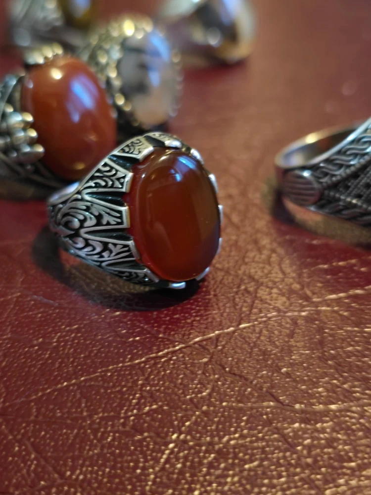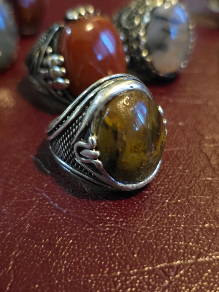 Selling a collection of vintage silver rings, each featuring a unique gemstone. These rings have intricate detailing and a classic look. Perfect for adding a touch of vintage charm to your style!