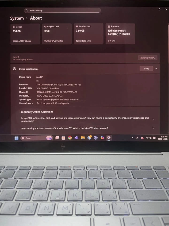 HP ENVY 16 i7-13700H, 32 GB RAM, RTX 4060, 1 TB SSD