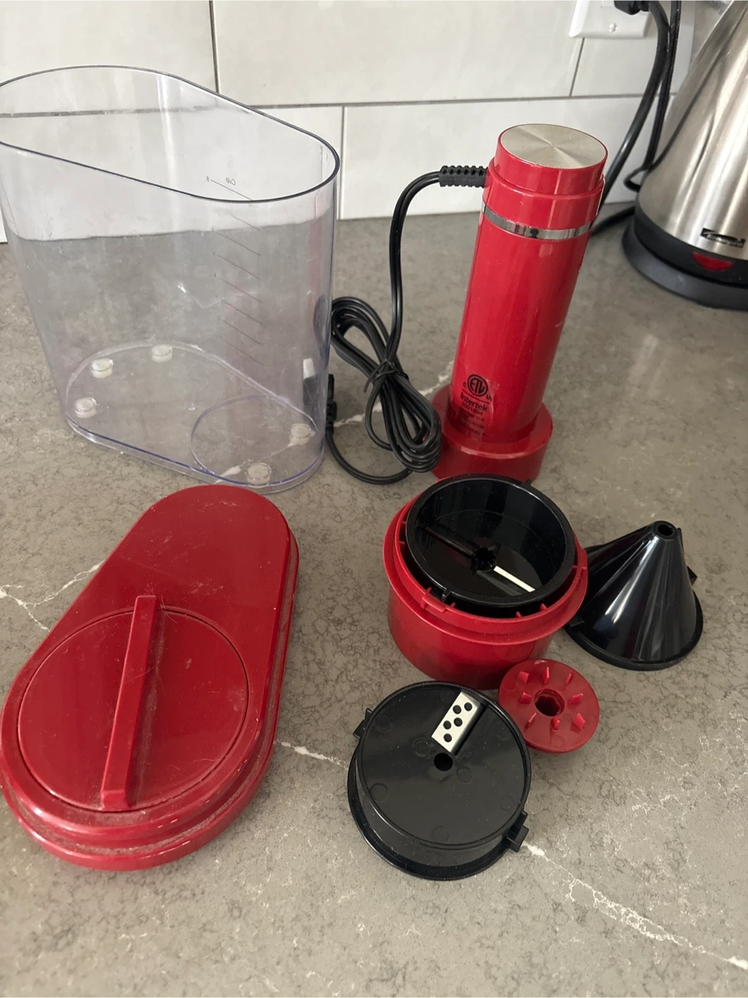 Selling a Wolfgang Puck electric vegetable slicer/spiral in red. It comes with all the components you see in the picture. It's in great condition and ready to help with your food prep…** pick up on Chandos Drive in Chicopee area of South Kitchener N2A4H8