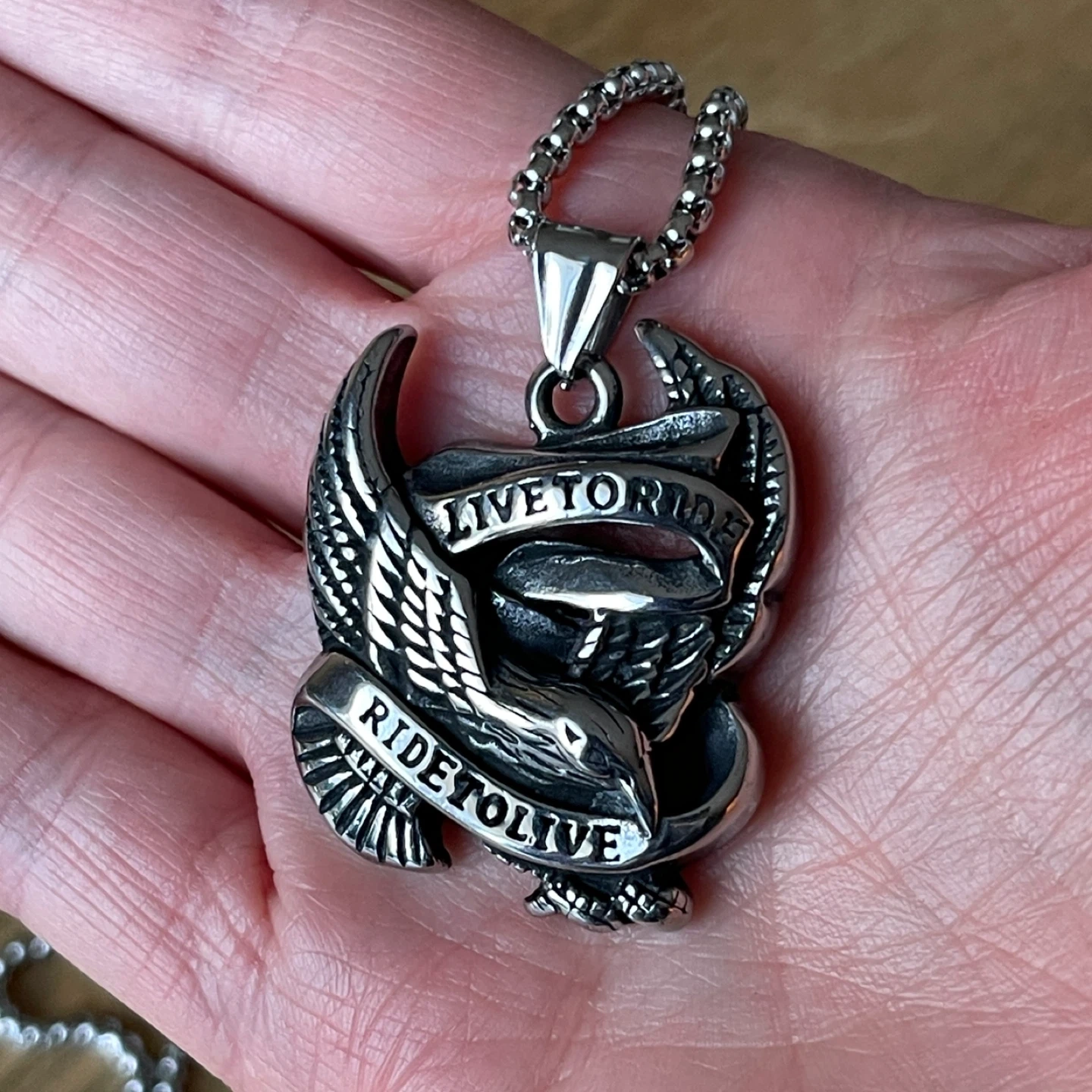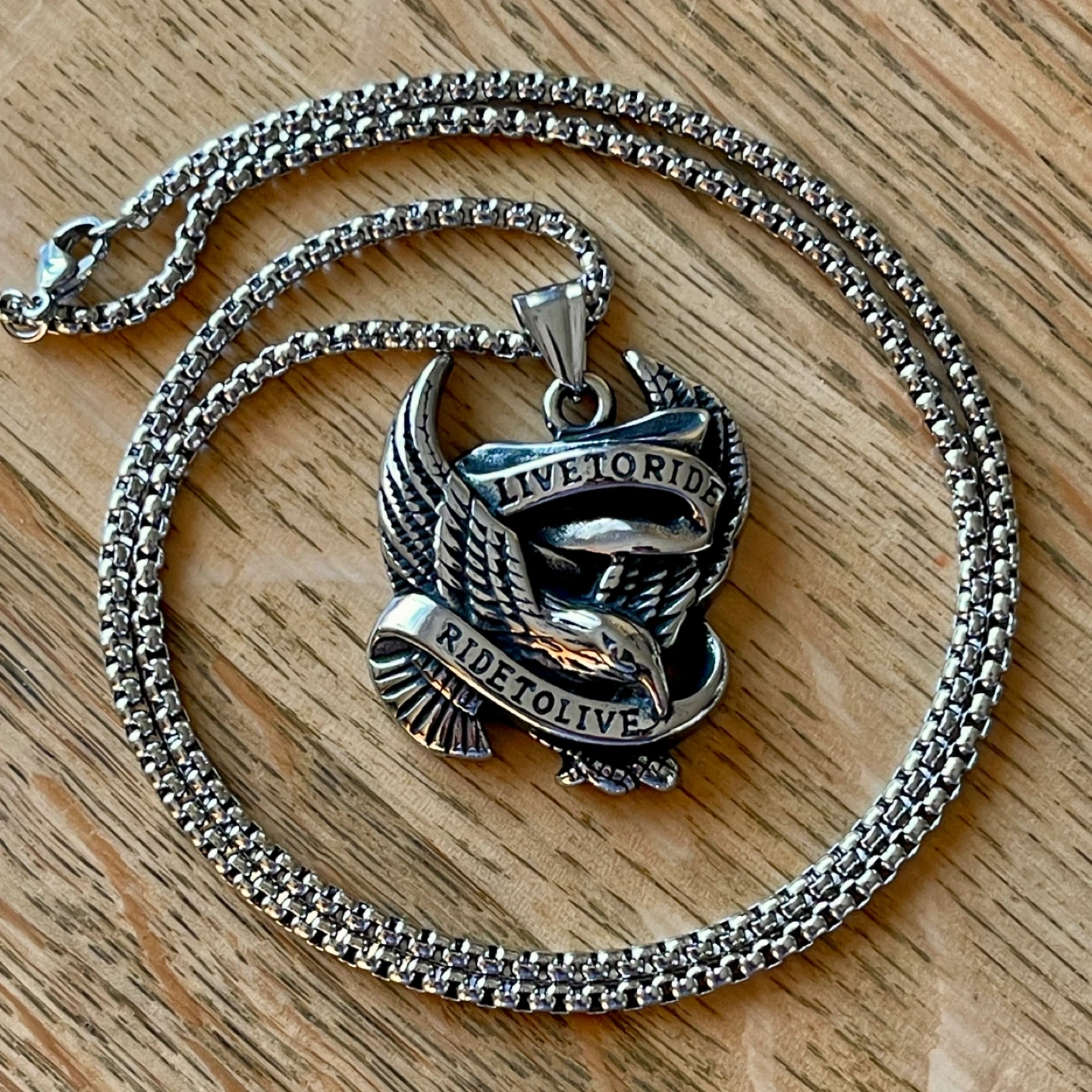 Motorcycle Live to Ride, ride to live stainless steel necklace