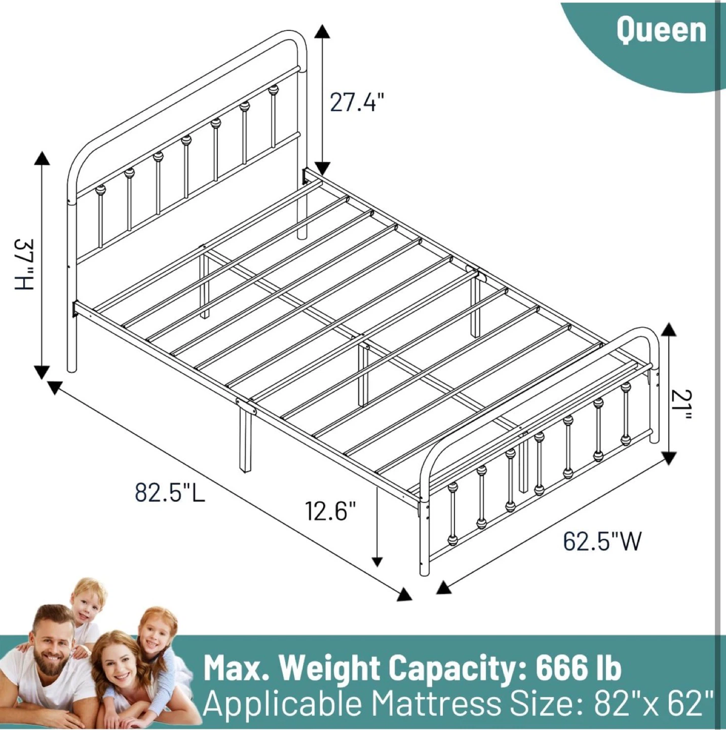 - Dimensions: 82.5"L x 62.5"W x 37"H