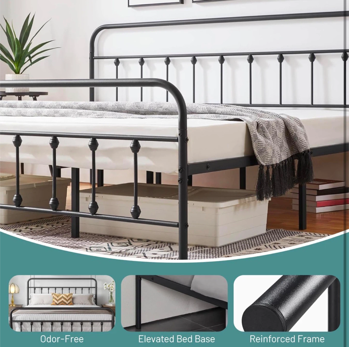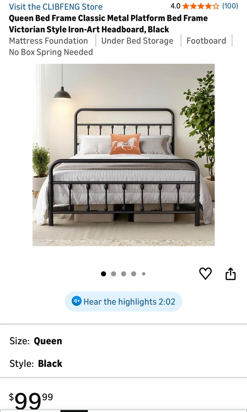 This is a twin size black metal platform bed frame. It has a Victorian style iron-art headboard and footboard. No box spring is needed. The applicable mattress size is 82" x 62".