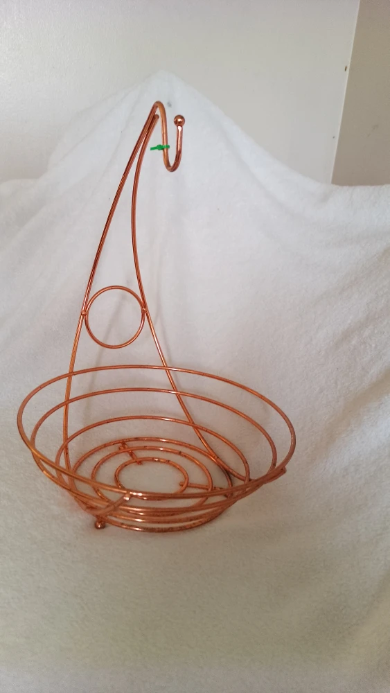Here's a lovely copper-tone fruit bowl with a built-in banana hanger! It's a great way to display your fruit and keep bananas from bruising. It's in great shape and ready for a new home!