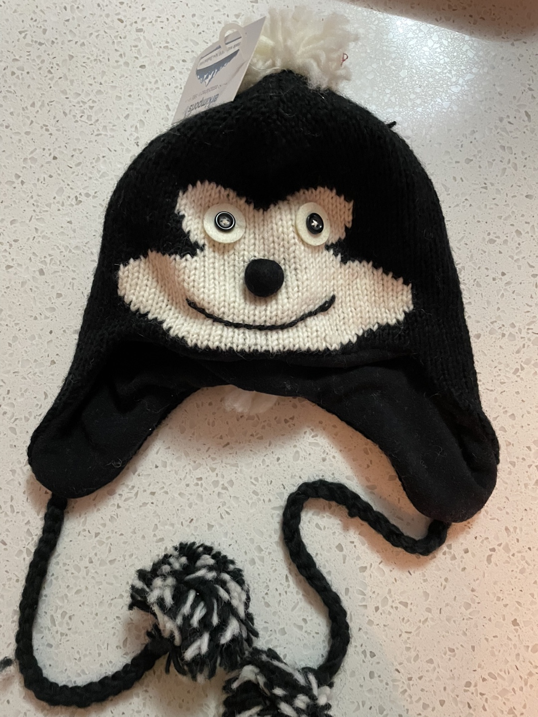 Brand new Arki Imports wool hat, still with tags attached! This unique hat is made with 100% New Zealand wool and has a fun, quirky design. The lining is 100% polyester fleece for extra comfort. Made in Nepal