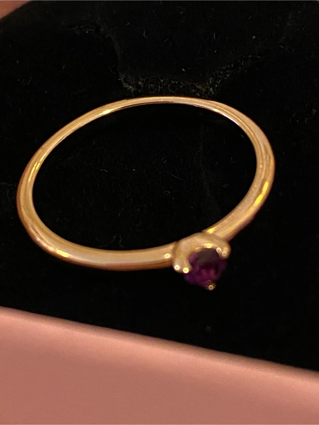 Add a pop of color to your collection with the Purple Solitaire Ring.Hand-finished in Pandora Rose (14k rose gold-plated unique metal blend) this simple design features a single purple cubic zirconia.Stack this ring with styles in the same metal finish for a uniform look or play around with warm and cool tones by teaming it with pieces in sterling silver.