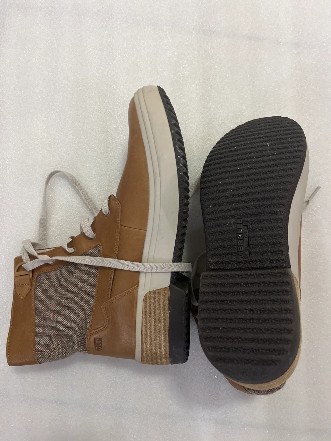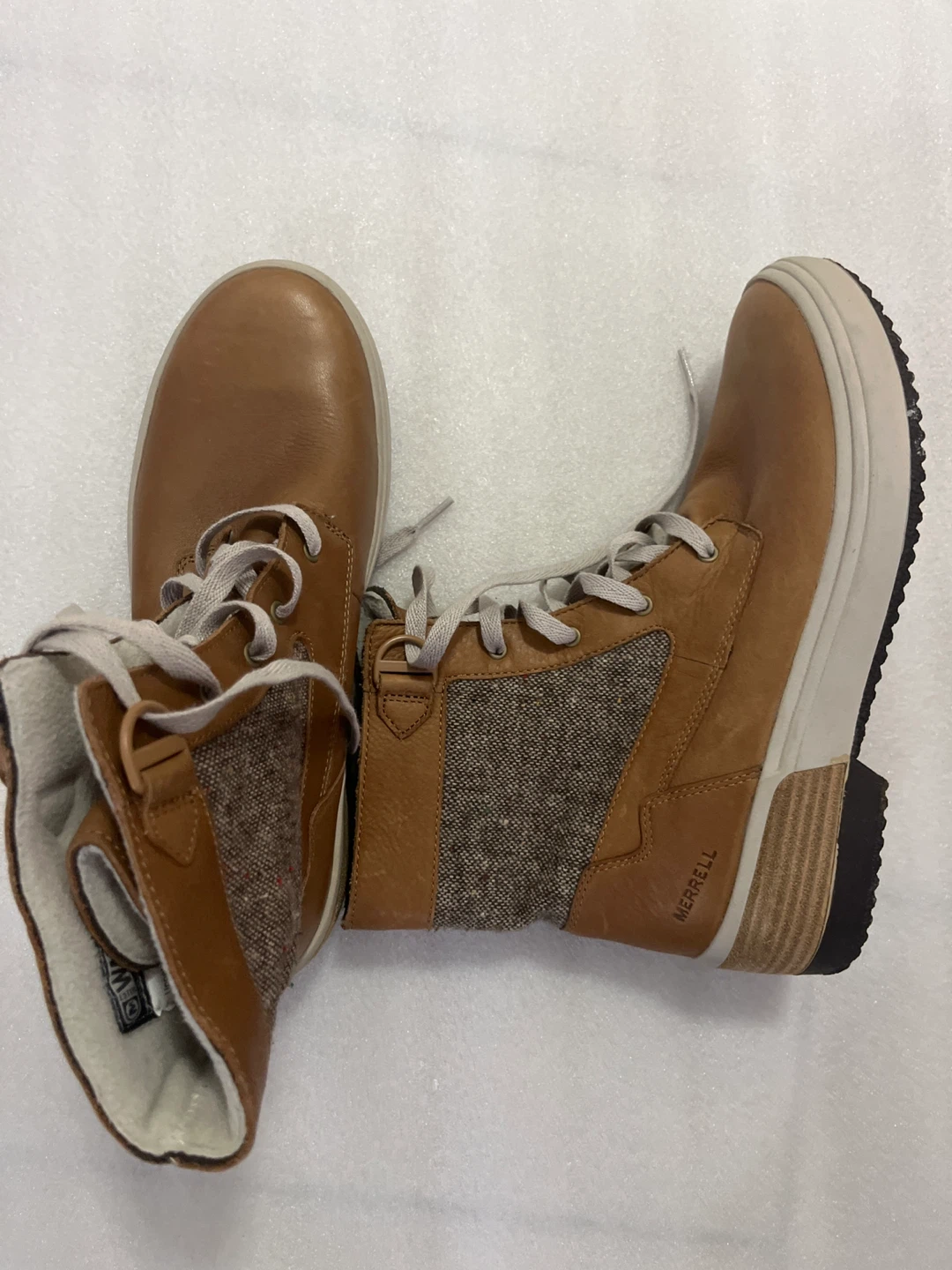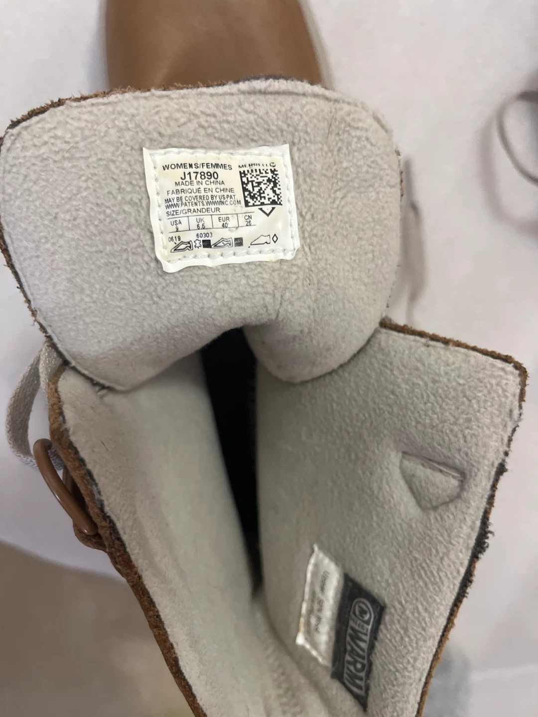 Selling a pair of Merrell women's boots, model J17890, in size 8.5. The upper is made of 50% wool and 50% polyester. These boots feature 100g of insulation to keep your feet warm and cozy!