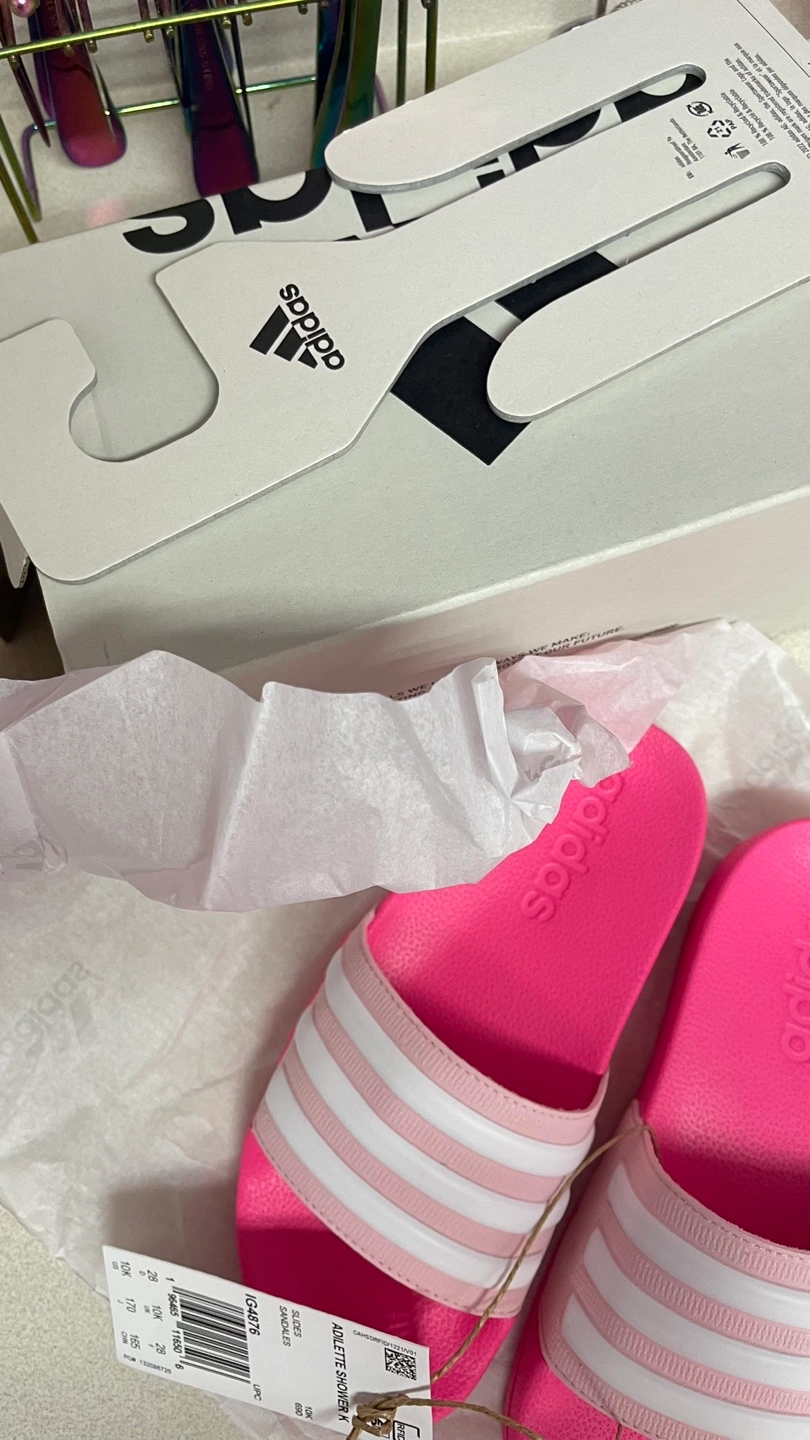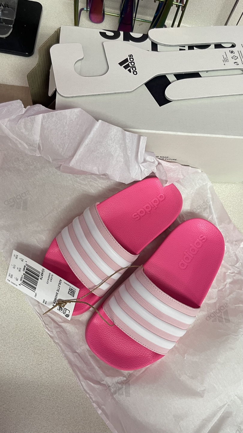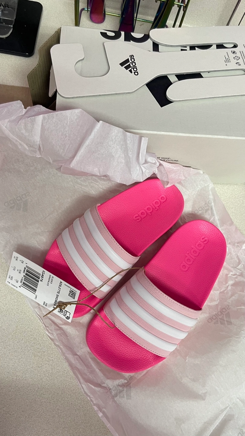 Brand new never been worn Adidas Adilette Shower slides in a fun pink colour! They come with the original box and tags