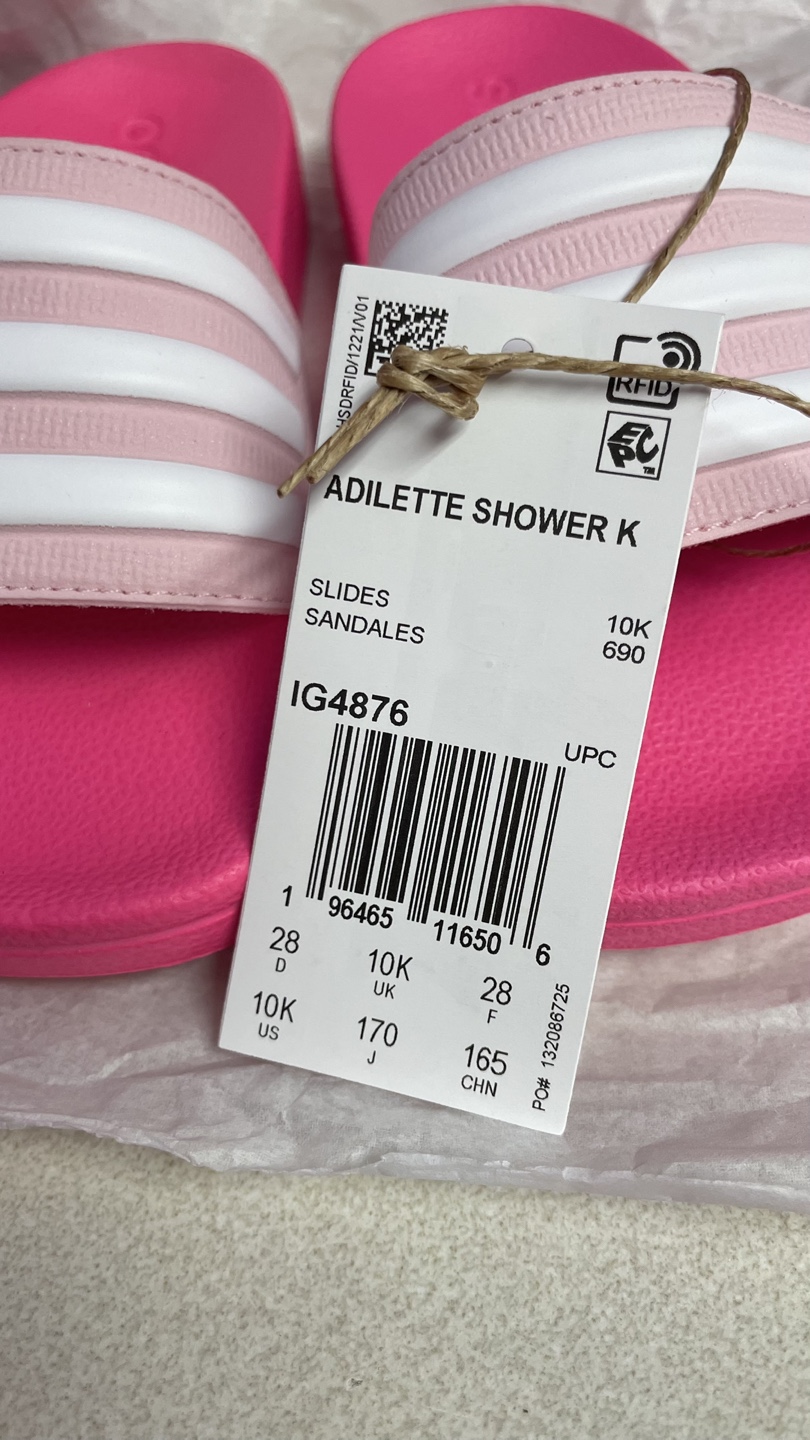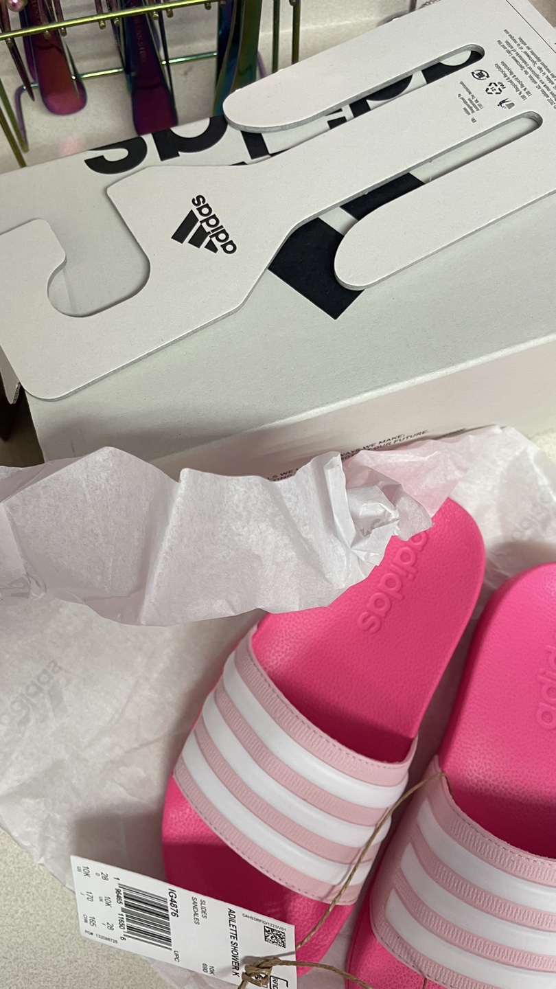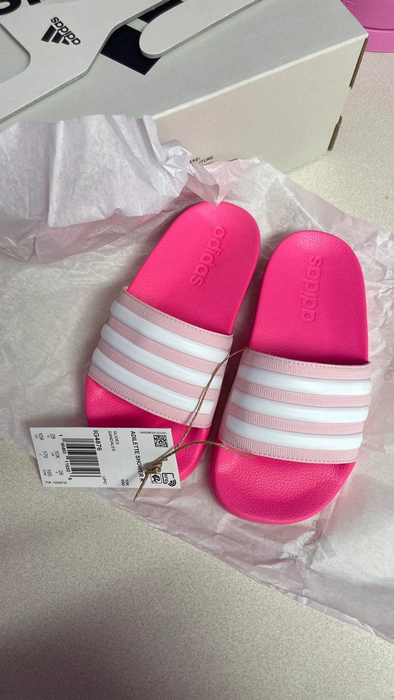 Brand new never been worn Adidas Adilette Shower slides in a fun pink colour! They come with the original box and tags