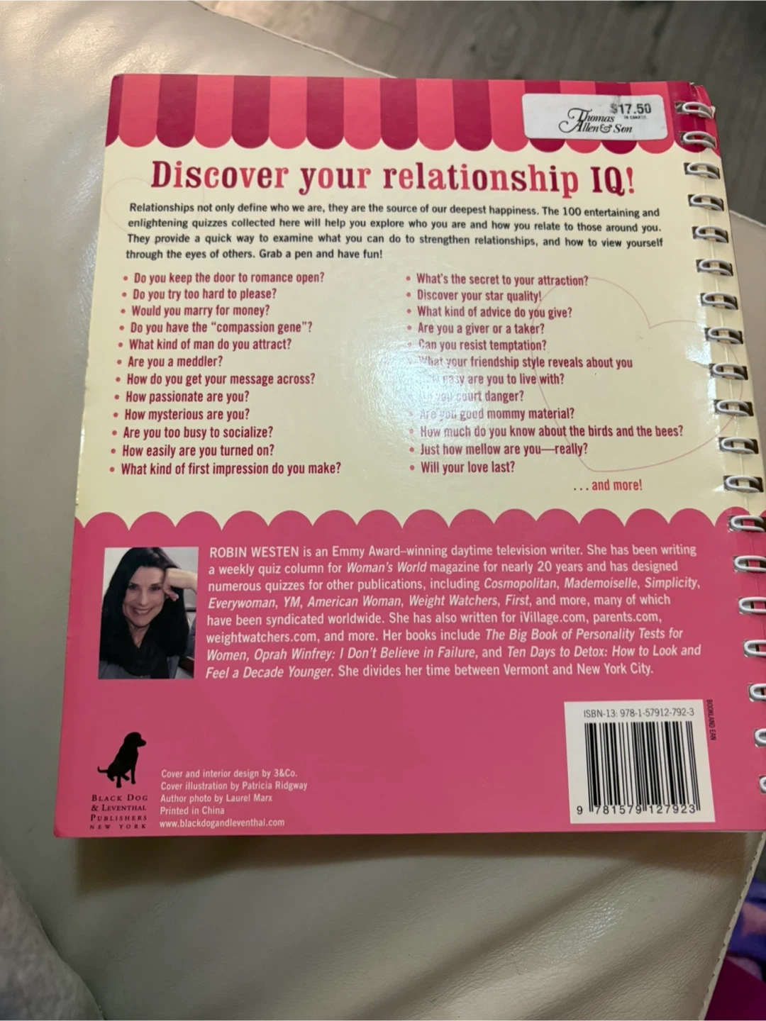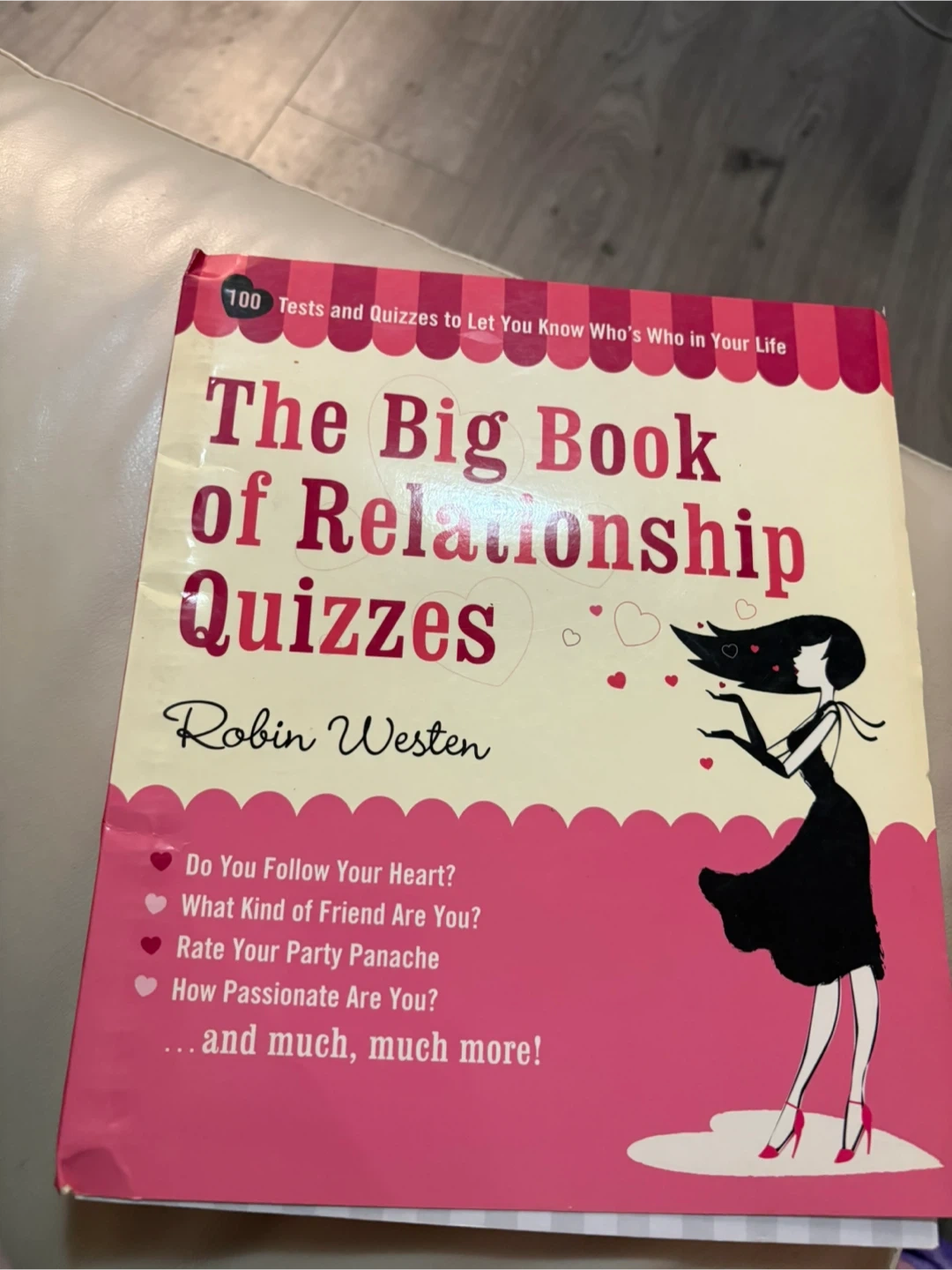 Selling 'The Big Book of Relationship Quizzes' by Robin Westen! It's filled with 100 tests and quizzes to let you know who's who in your life. A fun way to examine what you can do to strengthen relationships and how to view yourself through the eyes of others