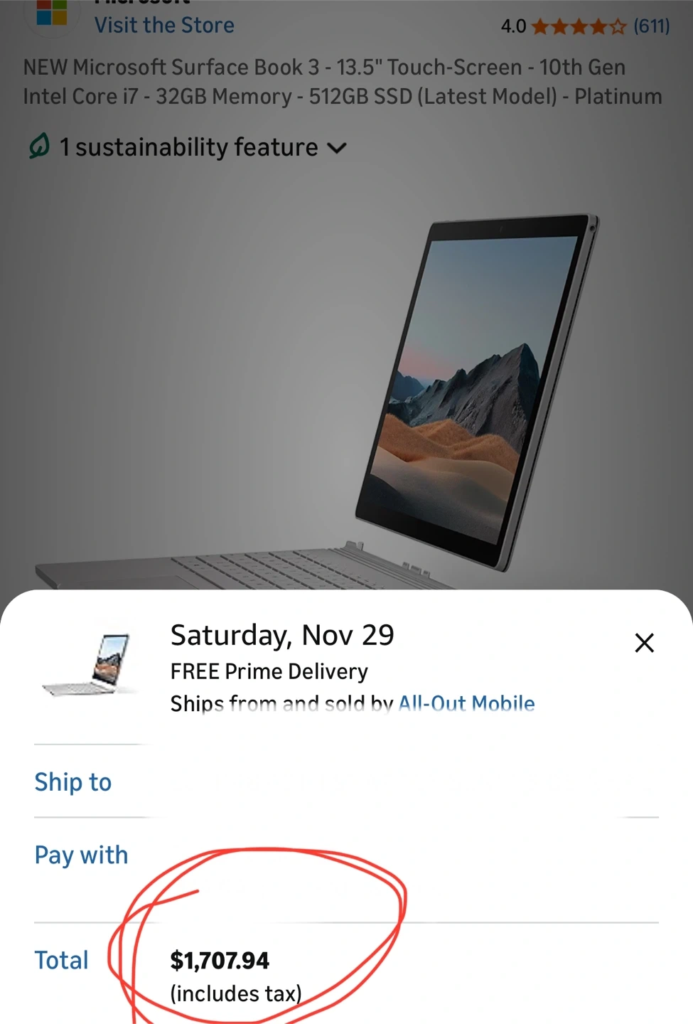 MICROSOFT SURFACE BOOK 3 13.5" TOUCH I7-1065G7 32 512GB