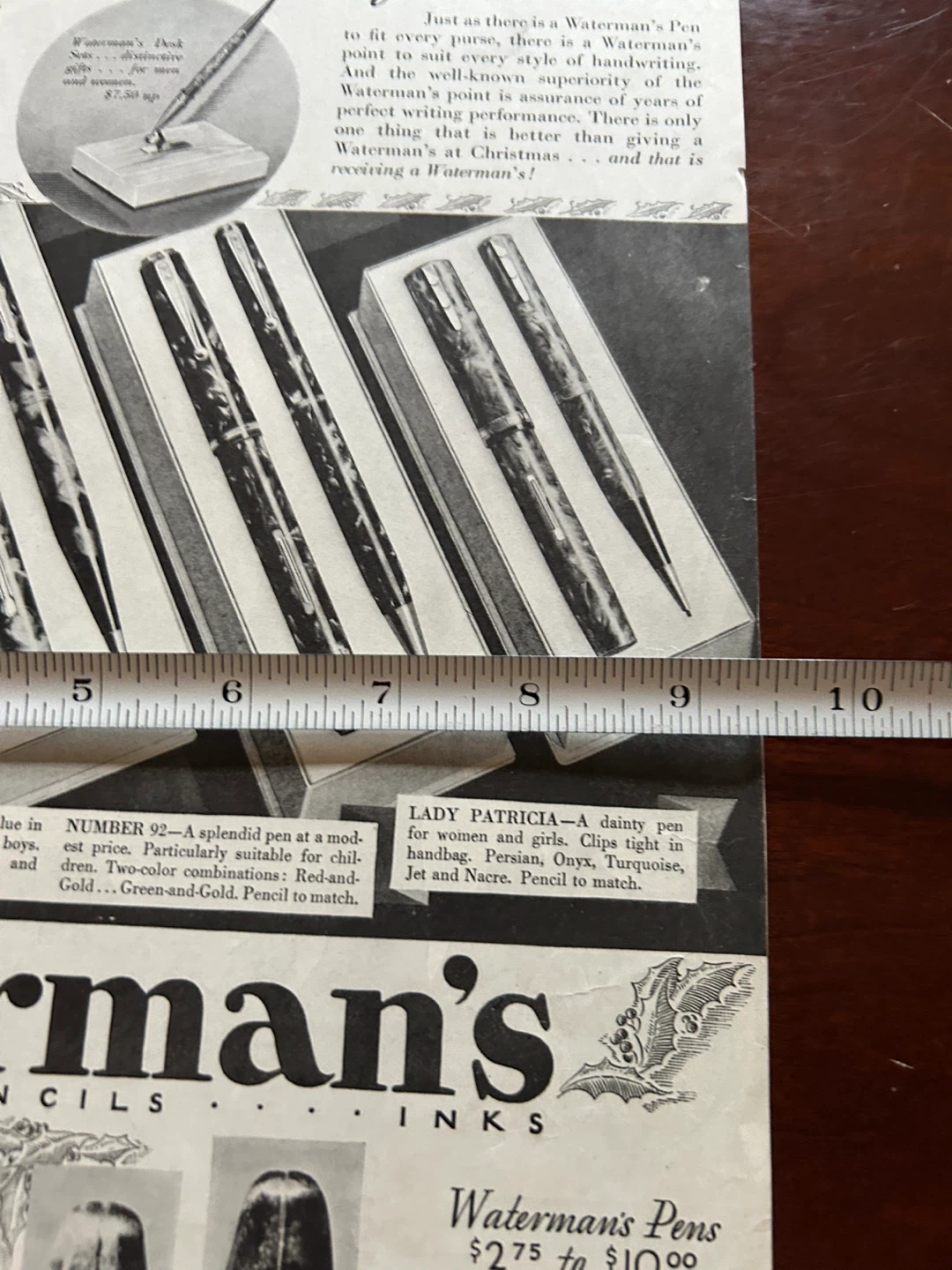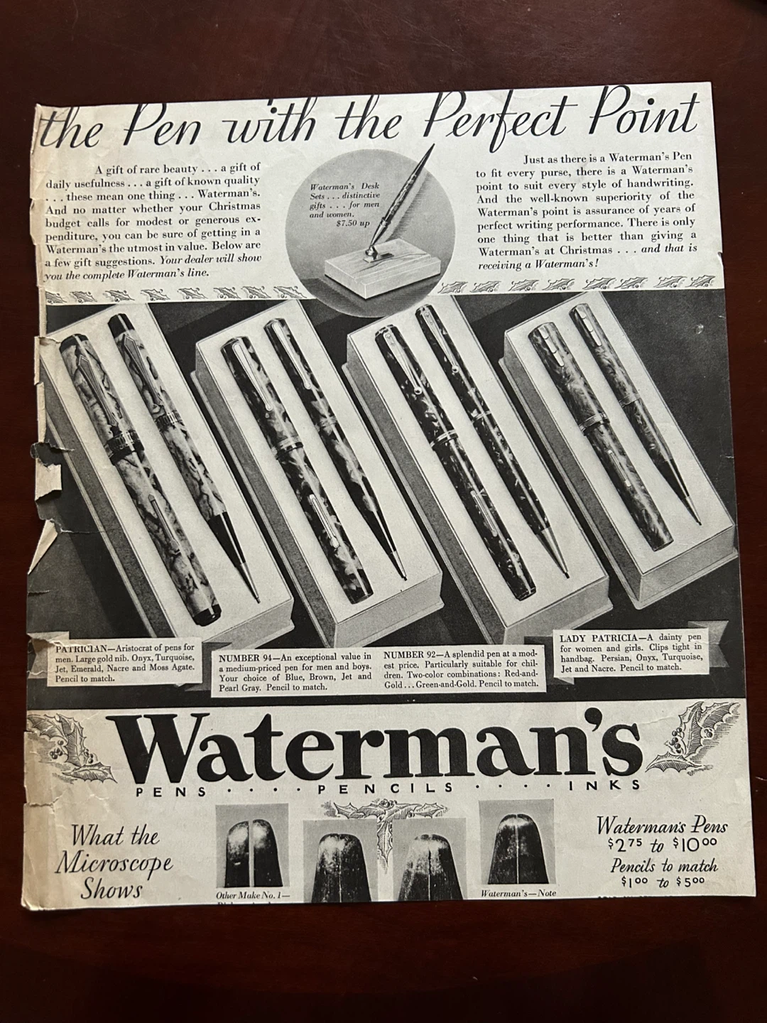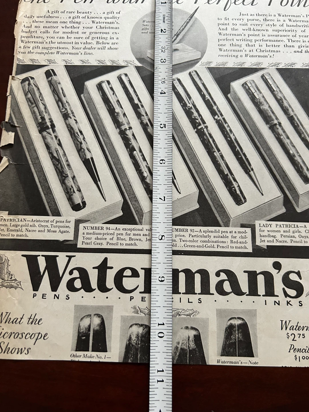 Waterman's pen fountain pen vintage antique ad 1920s 1930s art original Xmas present lacquer silver