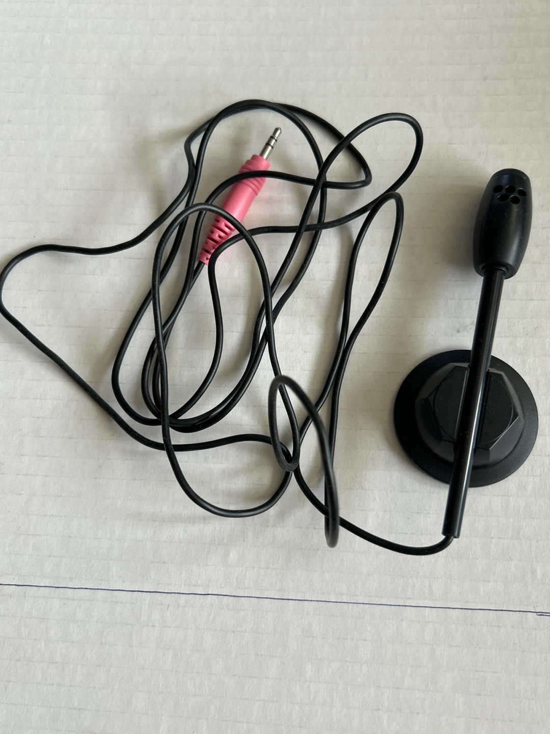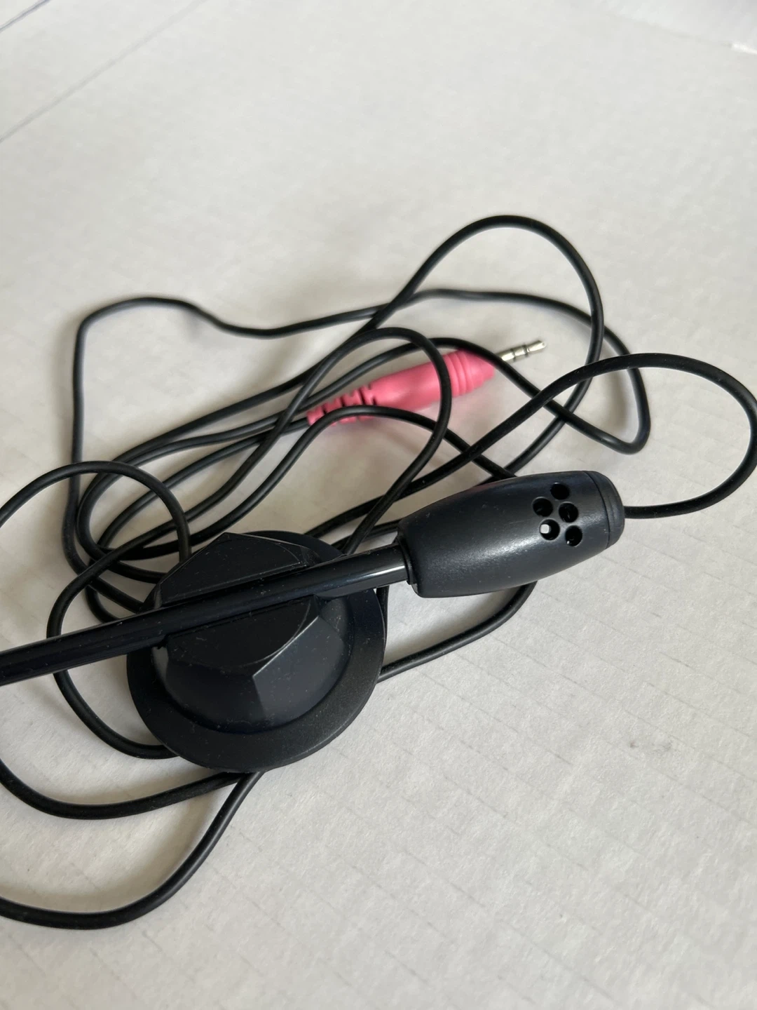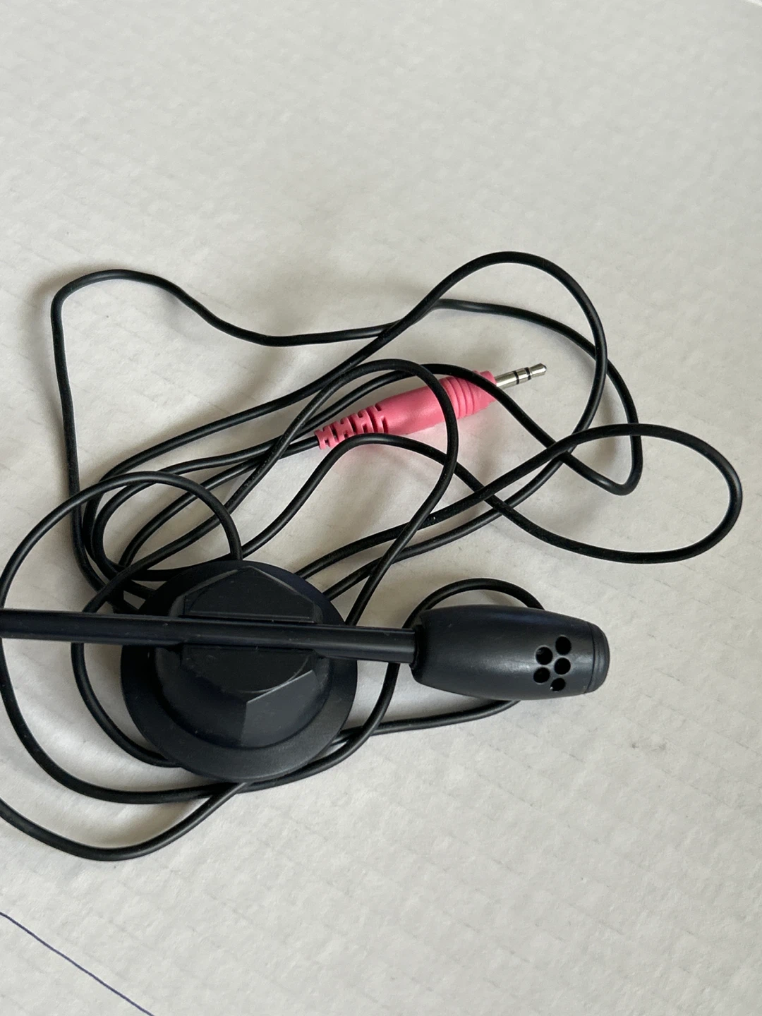 Giving away a used black microphone with a pink plug. It's in good condition and ready for a new user! Perfect for voice recording or online communication.
