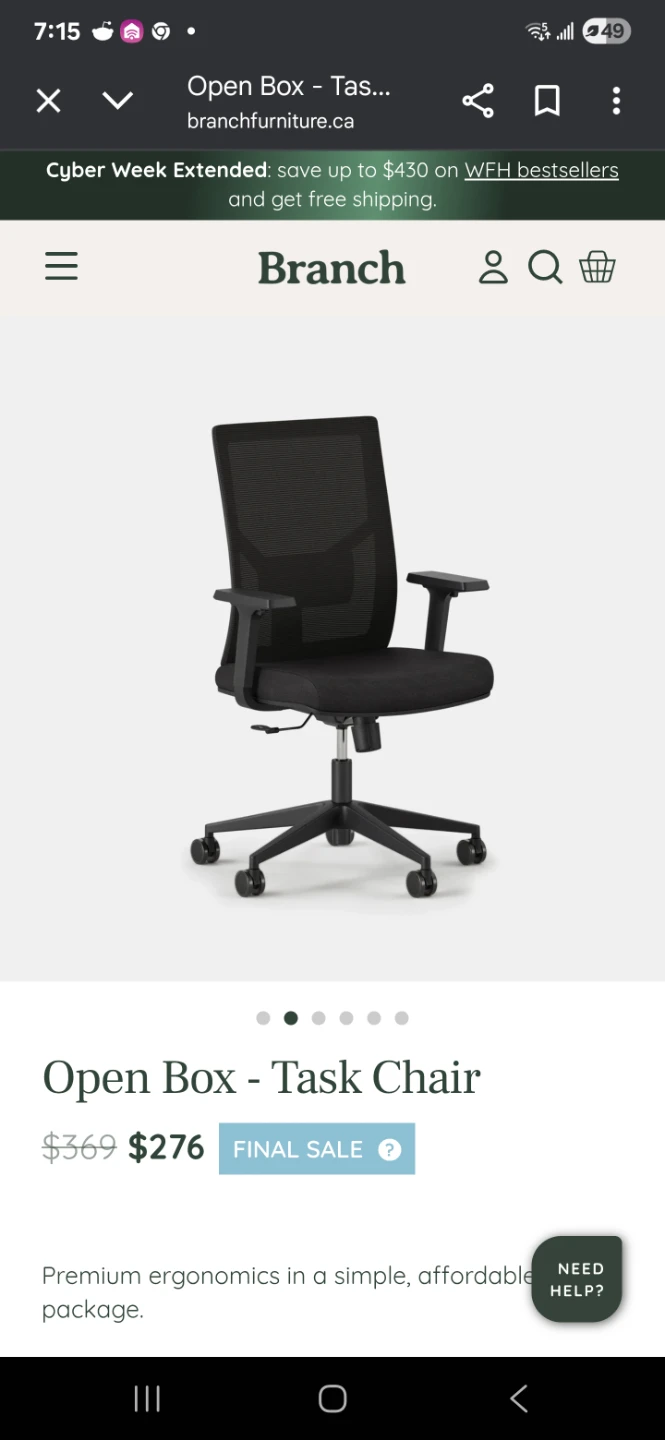 Selling a Branch Task Chair in like-new, open-box condition. This chair is known for its comfort, support, and premium ergonomics—perfect for work-from-home or office use.