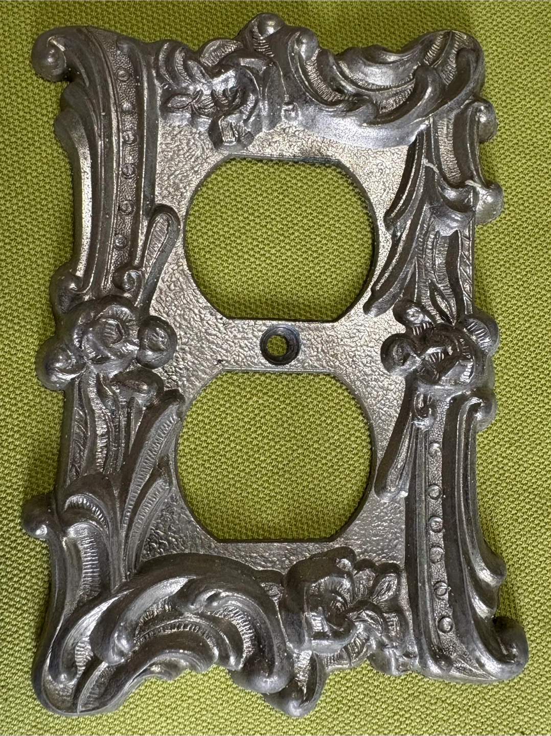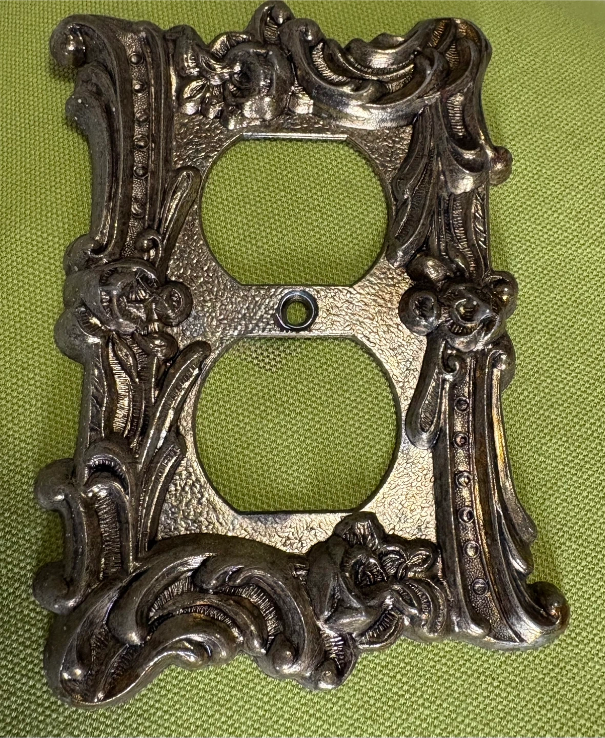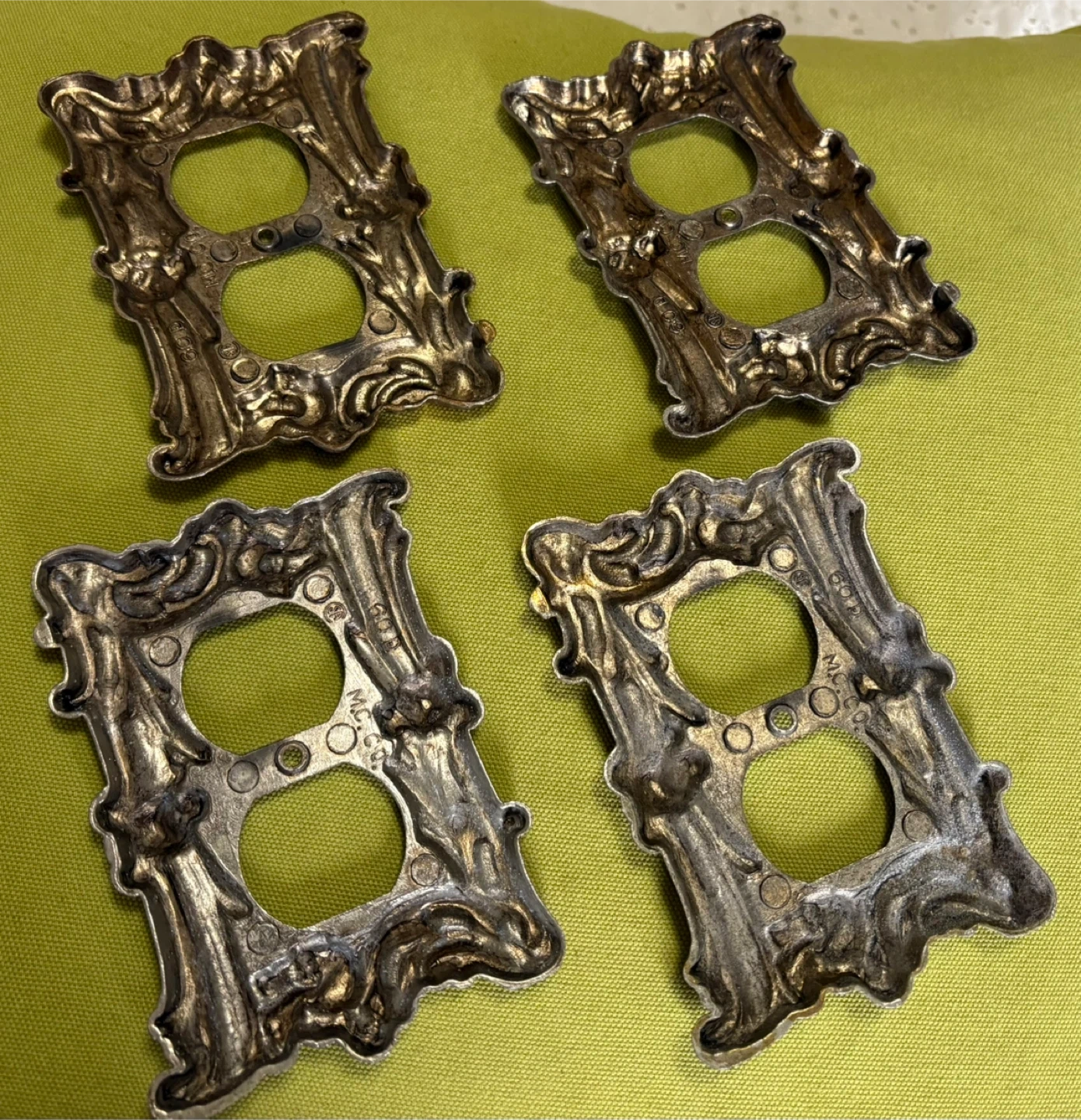Elevate your home decor with this set of four ornate, vintage-style outlet covers. These used decorative pieces are sure to add a touch of elegance and charm to any room. Perfect for those who appreciate a blend of classic and functional design.