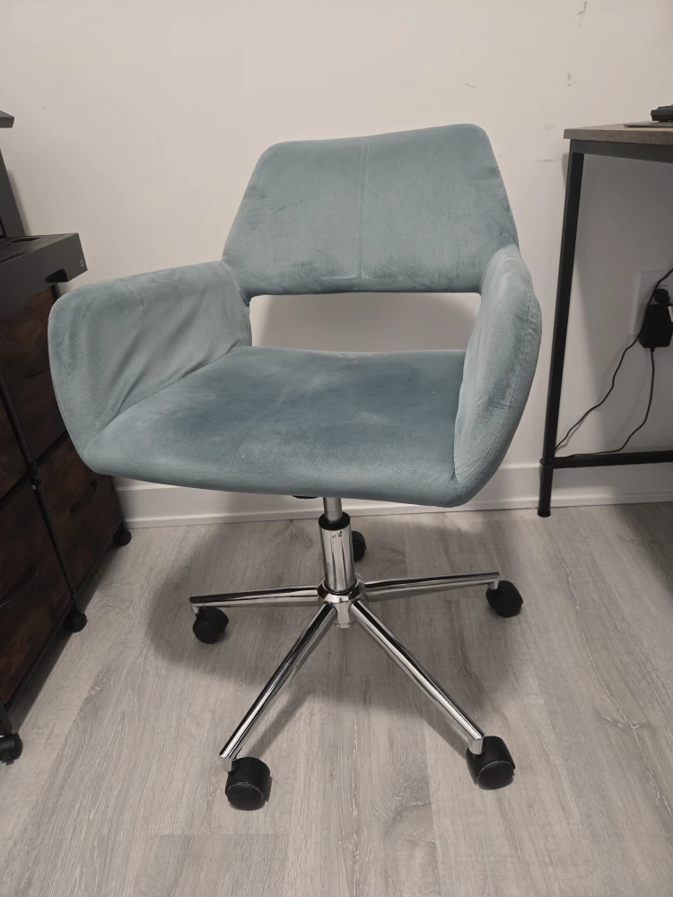 Selling a comfy blue office chair! It has a few small marks on the fabric, but otherwise it's in good shape and ready for a new workspace