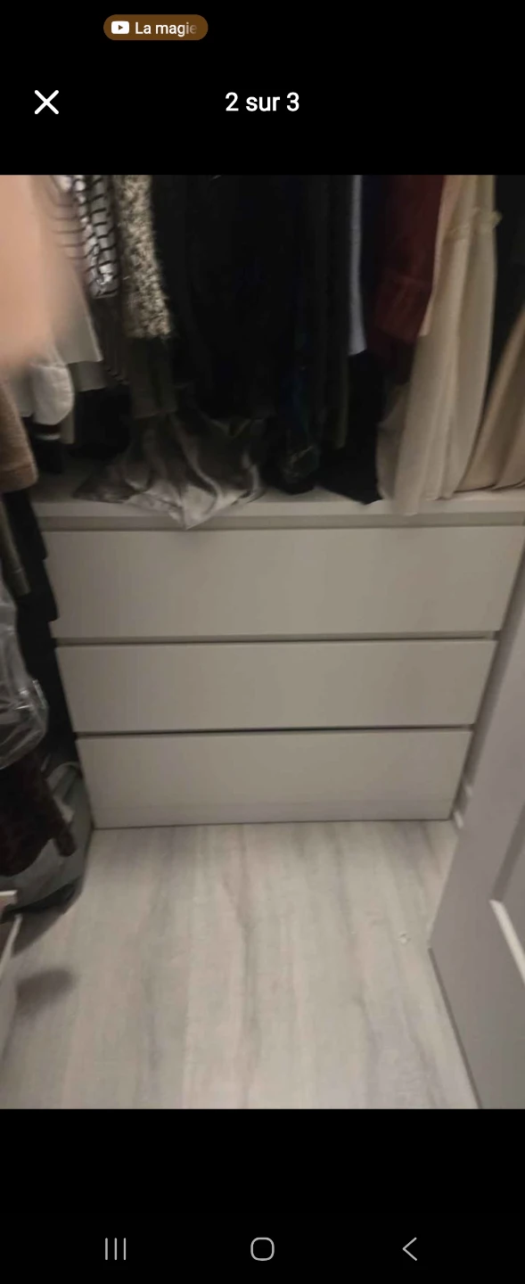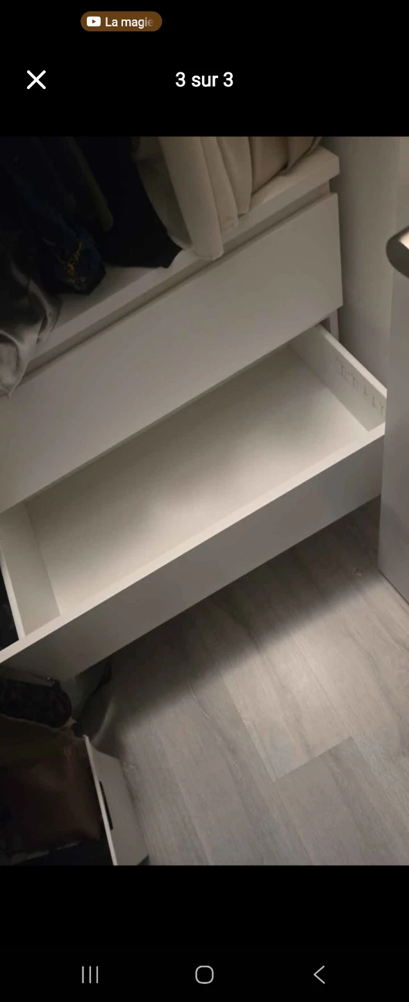 Selling a white Malm dresser from IKEA! It features three spacious drawers, perfect for storing clothes or other items. This dresser is in great condition and would be a lovely addition to any bedroom or living space