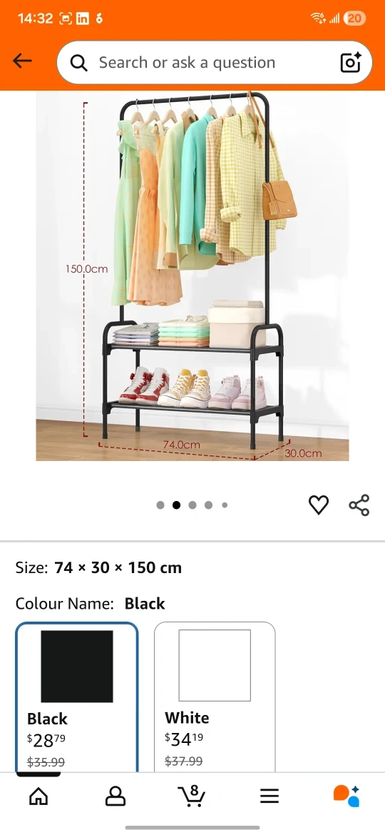 Buy & SellBlack Clothing Rack with Shoe StorageBlack Clothing Rack with Shoe Storage$20Selling a black clothing rack with shoe storage. It's in great condition and ready to organize your clothes and shoes! The size is 74 x 30 x 150 cmConditionNewWHERE TO MEETDixie and rathburnView MapSELLERverifiedShubhRockwood Mall24120 reviews2 chats·2 favorites·41 viewsSEND CHAT TO SELLERHi Shubh! I’m interested in your listing.Hi Shubh! I’m interested in your listing.Get the Karrot app to chatSign In to chat