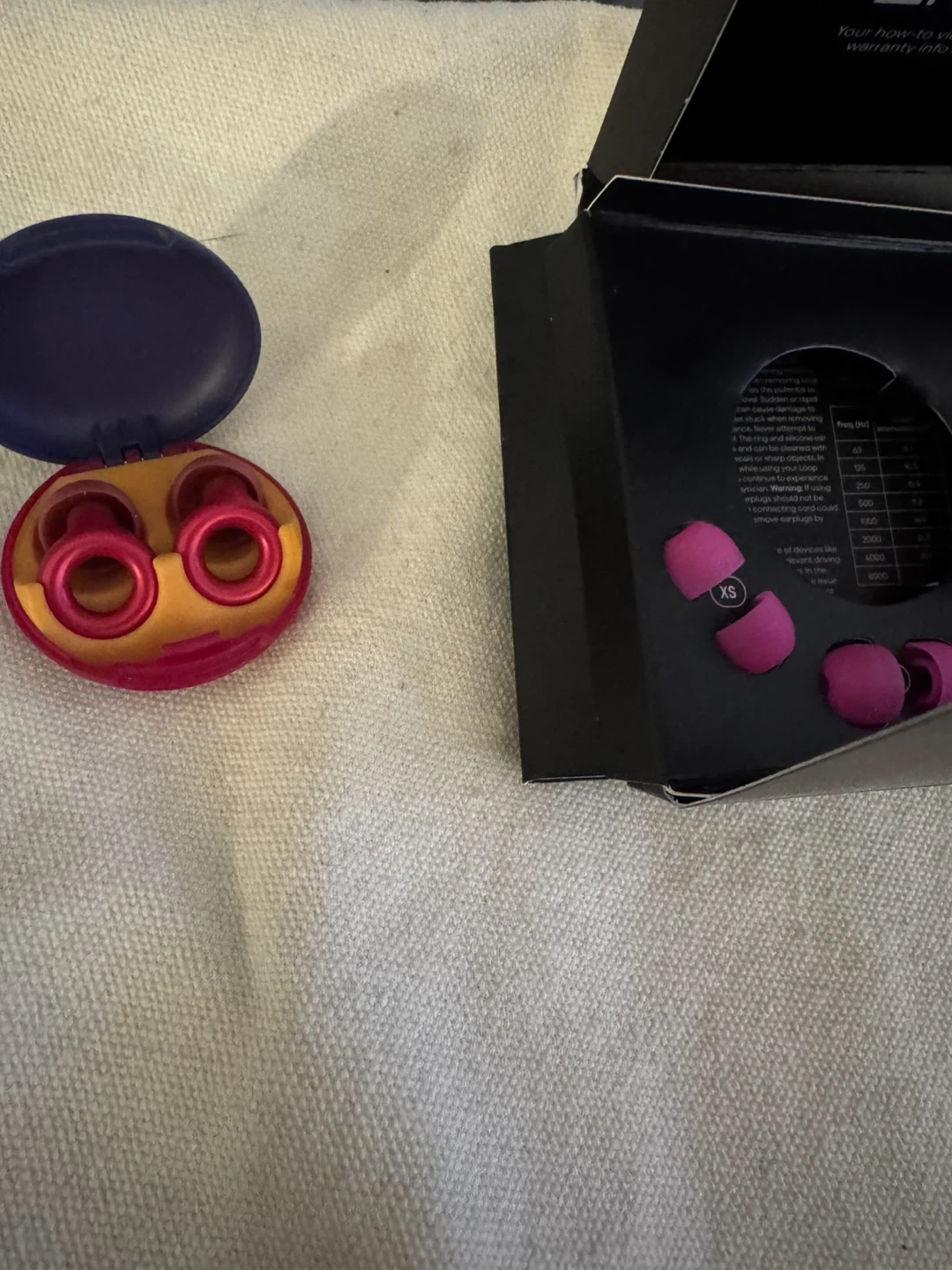 Selling a brand new set of Loop Equinox Engage earplugs in the Flamingo Flux colour! These earplugs are designed to help reduce noise and provide a comfortable listening experience. Comes with the original box and XS size ear tips