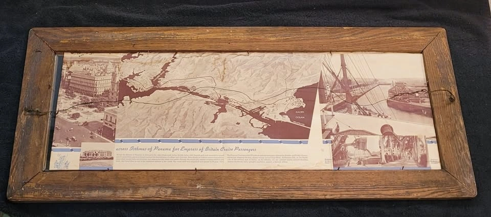 RMS Empress of Britain Cruise Passengers Brochure for the Panama Canal 1931 to 1939 behind Glass in a vintage Wooden Frame.