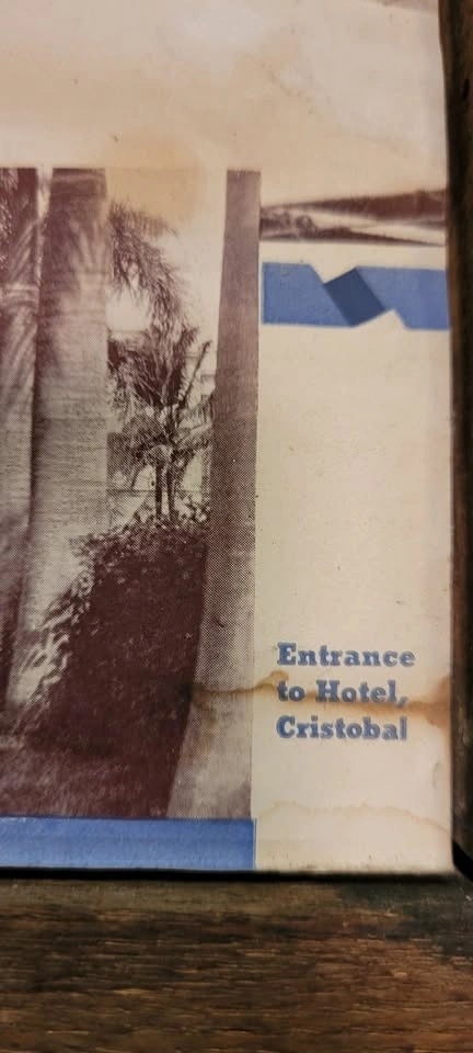 We took pictures of the back of the brochure which talks about the Panama Canal, and advertises the Entrance to the Hotel Cristobal in Panama.