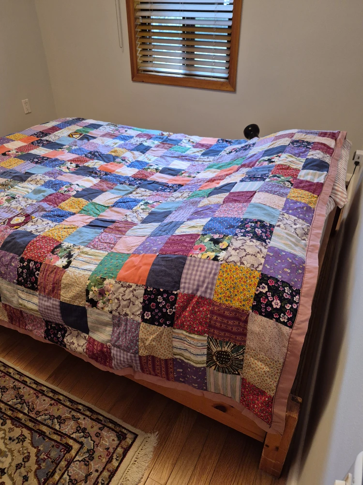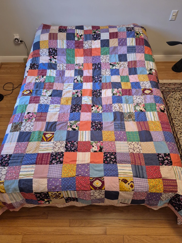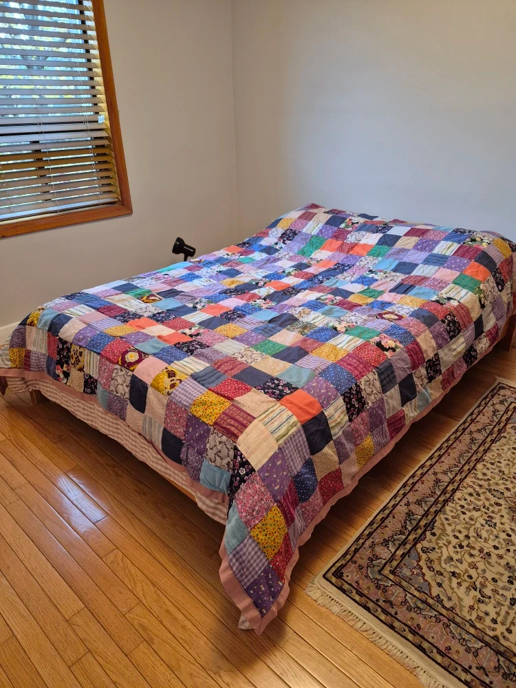 Handmade quilt. Happy, cheerful and unique. Handmade quilt. Happy, cheerful and unique. My mother made it years ago, so there is only one of these in the world.