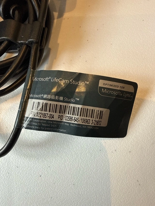 Capture high-definition video with this used Microsoft LifeCam Studio webcam, perfect for streaming, video calls, and recording. This webcam delivers sharp, clear 1080p HD video and features autofocus to keep you looking your best. It has been well taken care of, and is in great working condition. Specifications: * Video Resolution: 1080p HD * Focus Type: Autofocus * Microphone: Built-in wideband microphone * Connectivity: USB