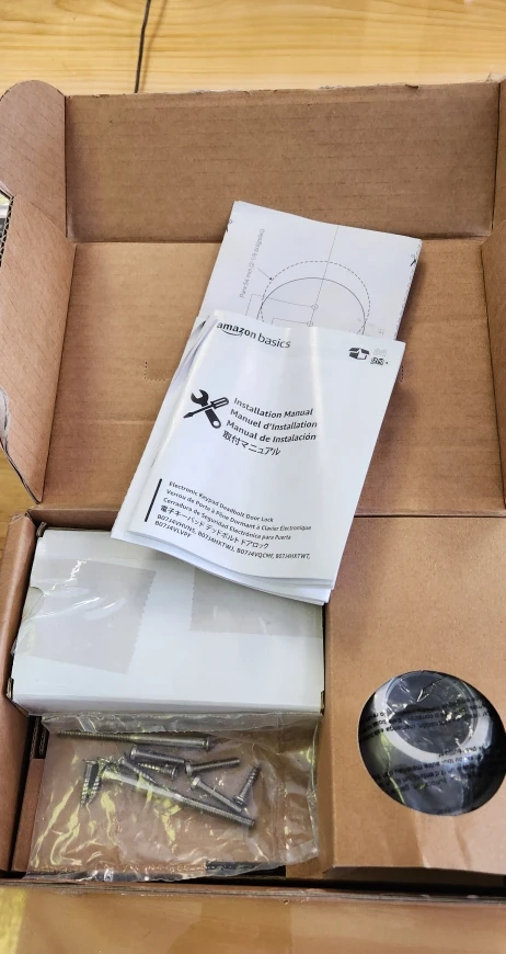 Selling an Amazon Basics electronic keypad deadbolt lock in satin nickel. It fits both left and right-handed doors 1-3/8 to 1-3/4 in thickness. It can be used electronically or with a traditional key. Box and installation manual are included!