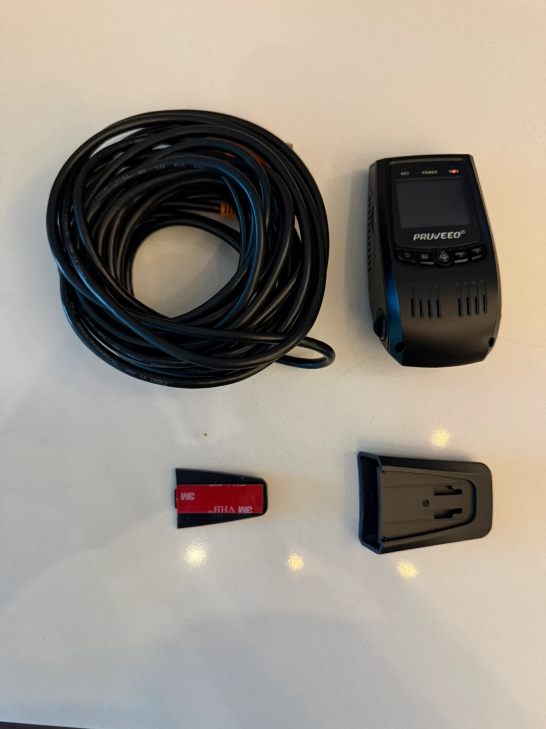 Pruveeo F5 dashcam with upgraded thicker cable for wiring.