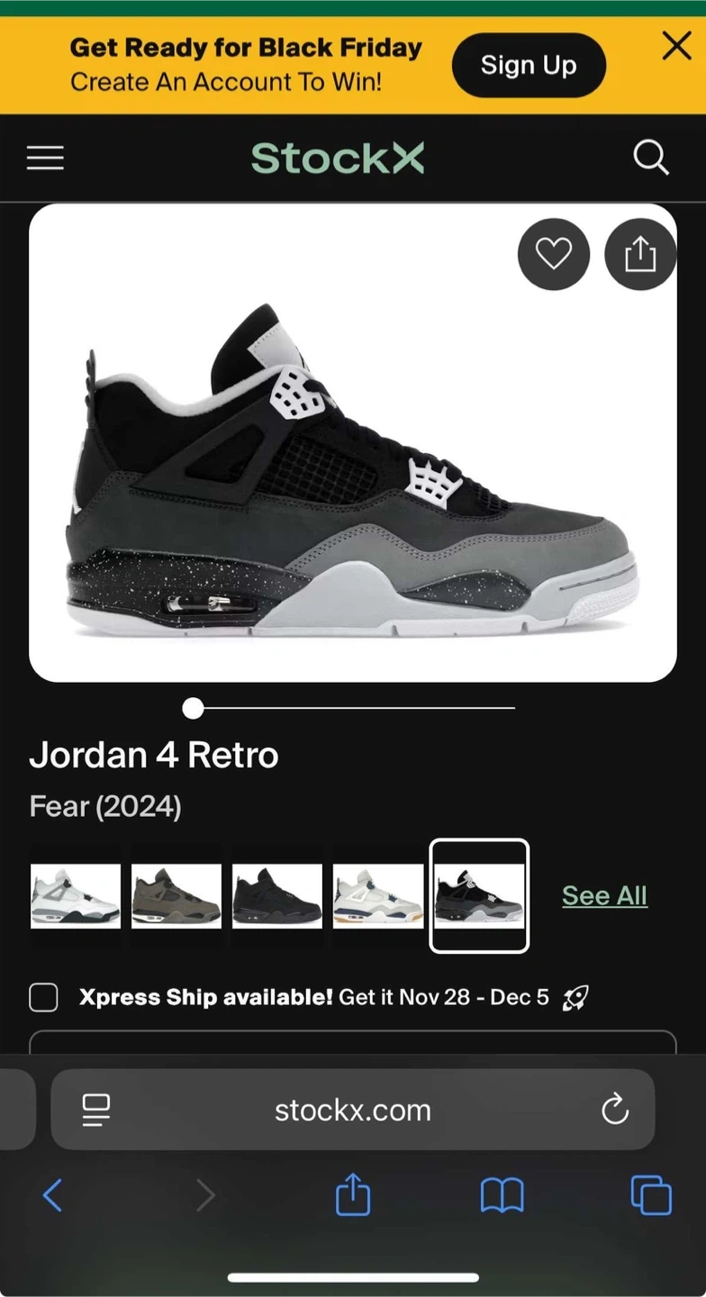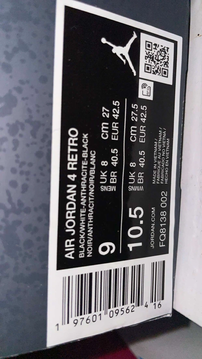 Selling a pair of Jordan 4 Retro Fear (2024) sneakers in size 9 They're black, white, anthracite, and noir/blanc. Comes with the original box!