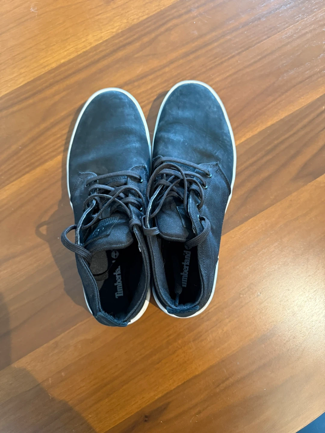 These are a pair of Timberland chukka sneakers in black. They are in good condition and ready for a new owner! They would be great for everyday wear.