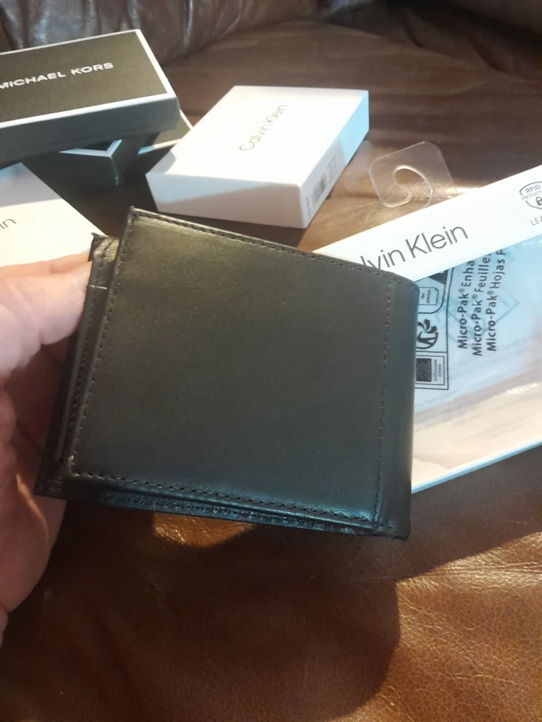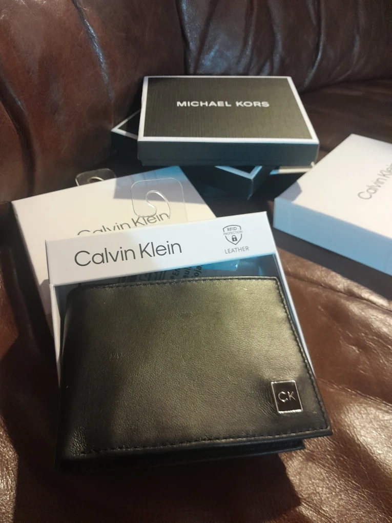Selling a brand new Calvin Klein black leather wallet! It comes in its original box and features RFID protection. Perfect for everyday use! 9 card pockets, 1 ID pocket, large bill pocket brand new with tags and box